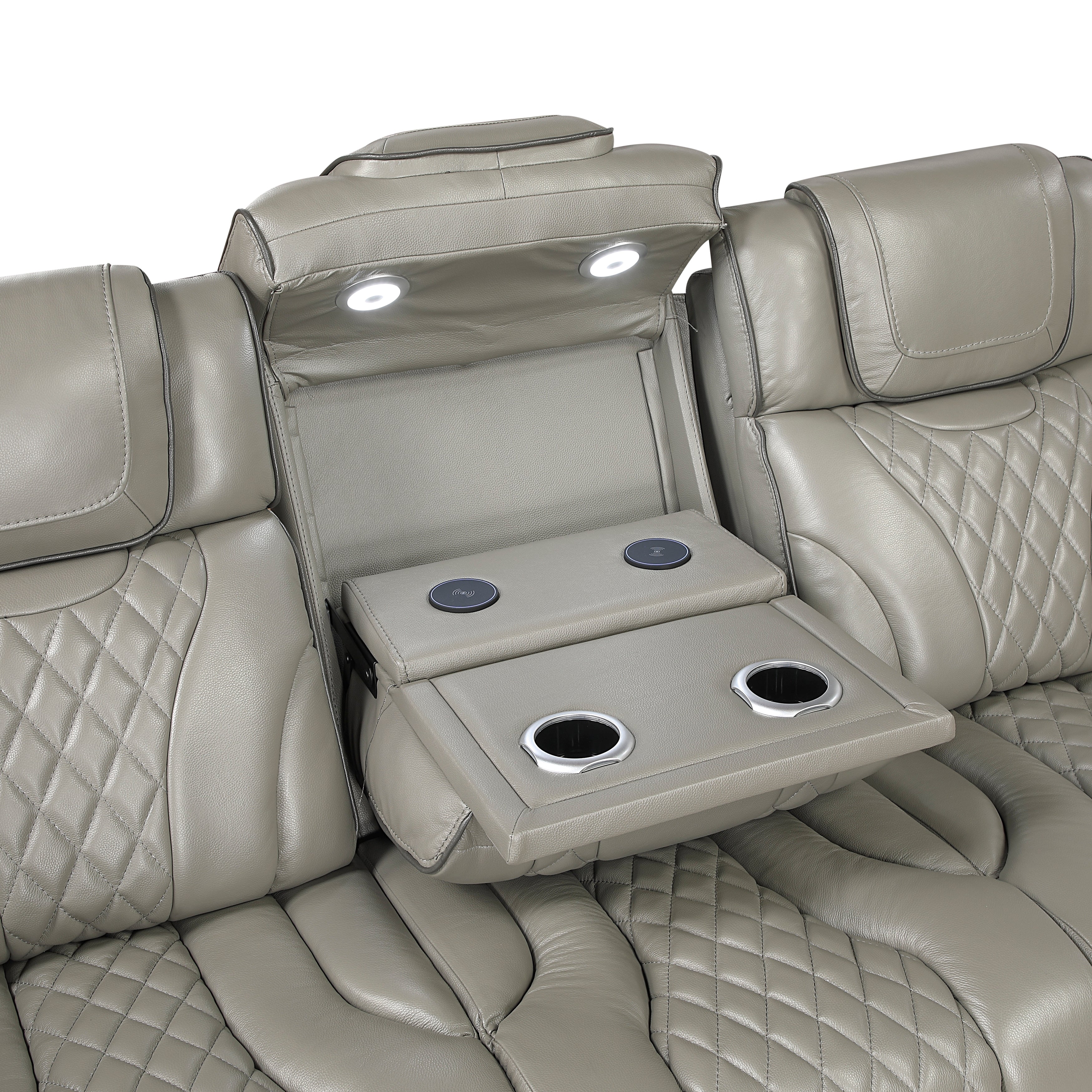 Power Double Reclining Sofa with Center Drop-Down Cup Holders, Power Headrests, Storage Arms with Cup holders, Reading Lights, Wireless Charger, Air Massage and Heat, LED Lighting and Charging Ports