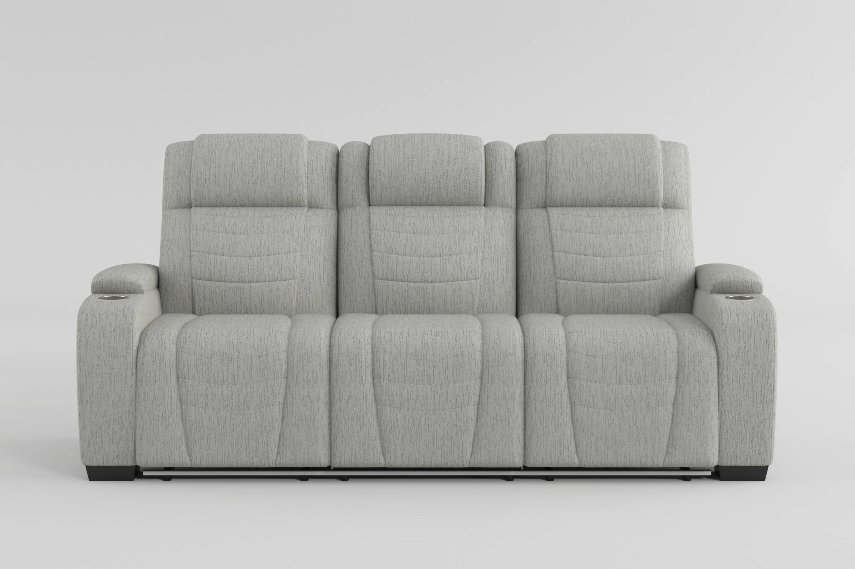 Experience the ultimate in home entertainment and comfort with the double reclining sofa, thoughtfully designed for shared relaxation and modern convenience. Upholstered in a soft and durable textured microfiber, this sofa features two pull tab reclining mechanisms, allowing each to find their perfect lounging position. The innovative drop-down center table transforms this sofa into an entertainment hub, complete with LED lighting, dual cup holders, a handy magazine pocket, and the essential power outlets and USB charging ports to keep your devices ready. Enjoy additional features like hidden armrest storage, integrated cup holders on the outer seats, and ambient LED lighting along the base, all built upon a sturdy solid wood and plywood frame with metal-reinforced seats for lasting durability and support up to 300lbs per seat.
