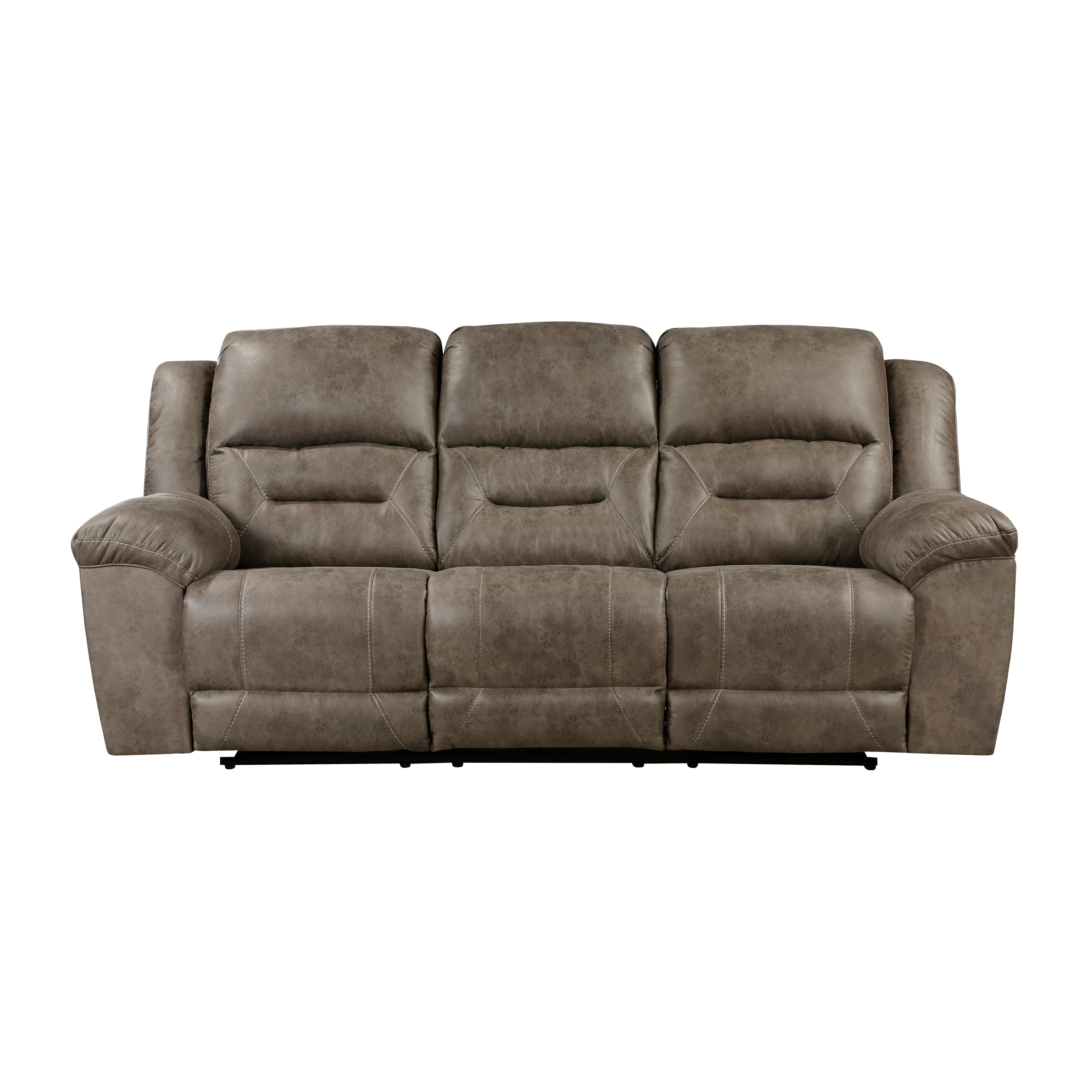 The Hazen Collection’s versatile style and functional design will be an inviting addition to your home’s living room. Dual end recliners are featured on the sofa, their reclining mechanisms engaged with a pull of the side mounted tabs, taking you from seated to prone in an easy motion. Brown polished microfiber upholstery covers the plush pillow-top arms and contoured seating, creating a perfect combination ready for relaxation.