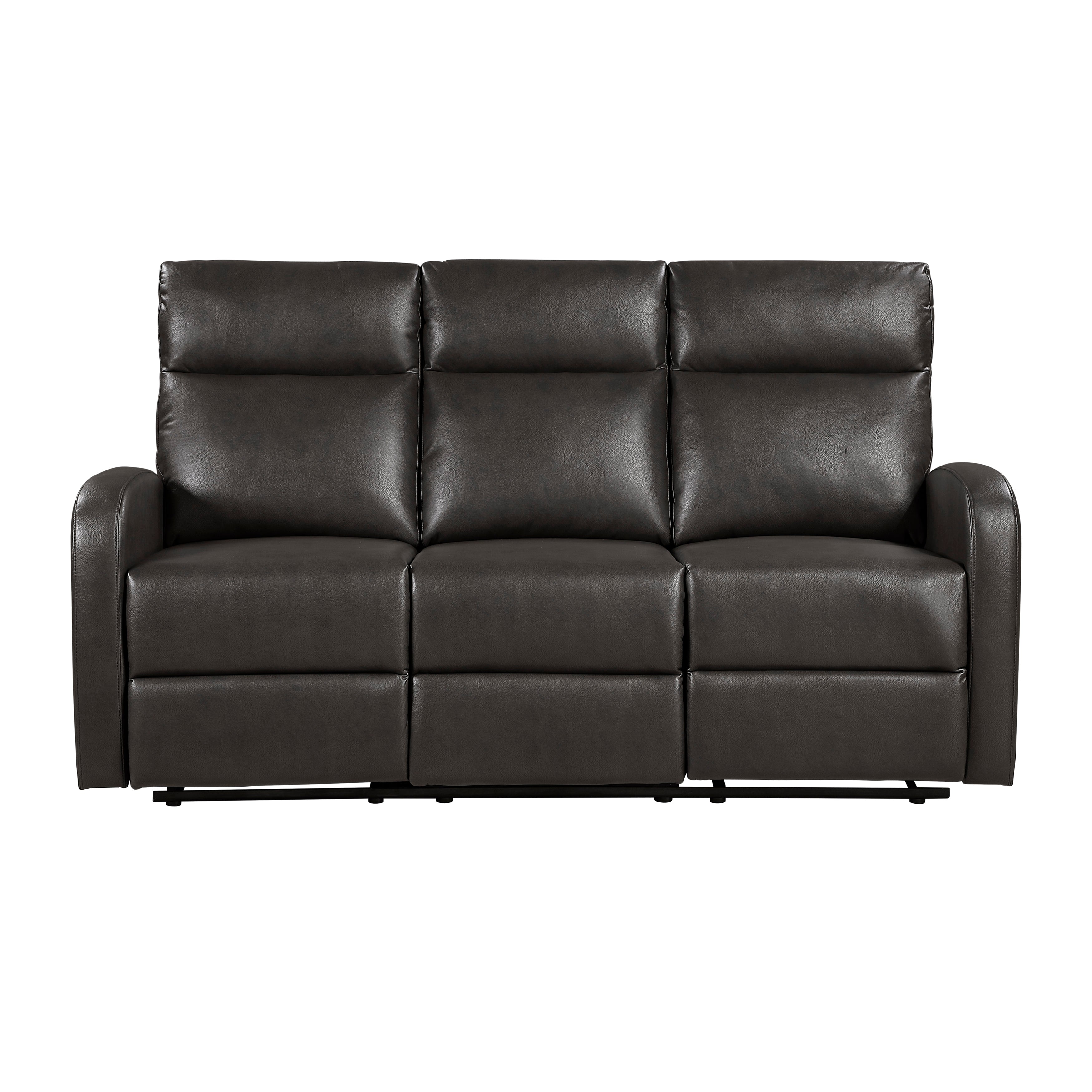 Relax and unwind in style with this sleek and functional wall-hugger double reclining sofa, the perfect centerpiece for your living room. Built on a durable plywood frame with metal-reinforced seats, this sofa is designed to provide sturdy and long-lasting support for years to come, with a weight capacity of 300lbs per seat. The plush foam padding over pocket coils and soft faux leather upholstery offer an incredibly comfortable and inviting seating experience. Designed with convenient tab pull reclining motions on both ends, and a wall-hugger feature that requires only 2 inches of clearance to fully recline, this sofa is ideal for maximizing space in any room. Integrated armrest pockets provide a handy spot for magazines or remote controls, combining modern convenience with classic comfort.