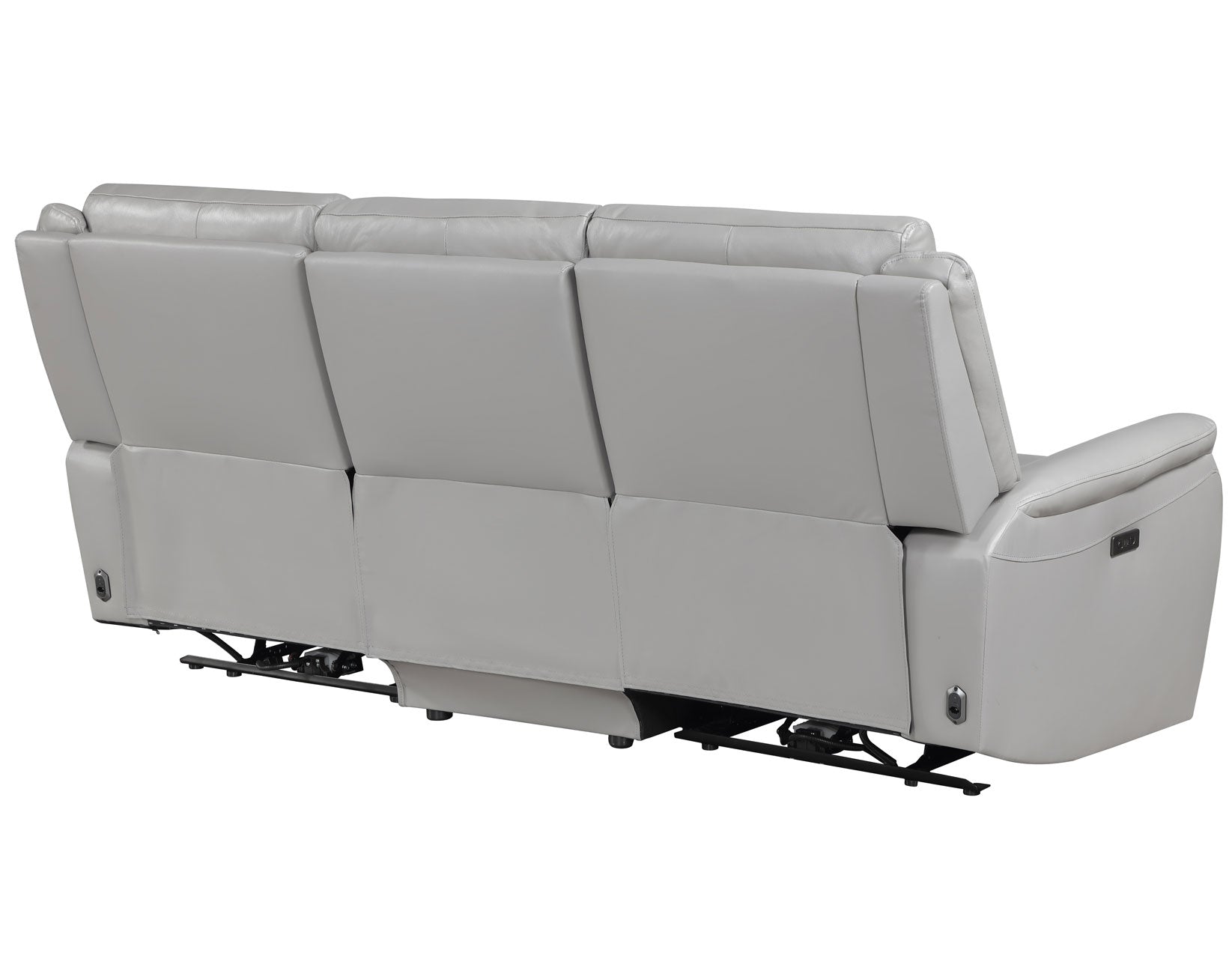 Redefine comfort with the Alexandria 3-Piece Reclining Sofa in Stone. Expertly upholstered in premium neutral leather, it blends seamlessly into any space with timeless appeal. Each end seat offers a smooth 143-degree power recline with just 3″ of wall clearance, ideal for modern living. Generous 7-inch cushions provide deep, supportive seating, while built-in USB ports keep your devices charged and close. Designed for style, function, and comfort, the Alexandria Sofa is your invitation to relax in effortless luxury.