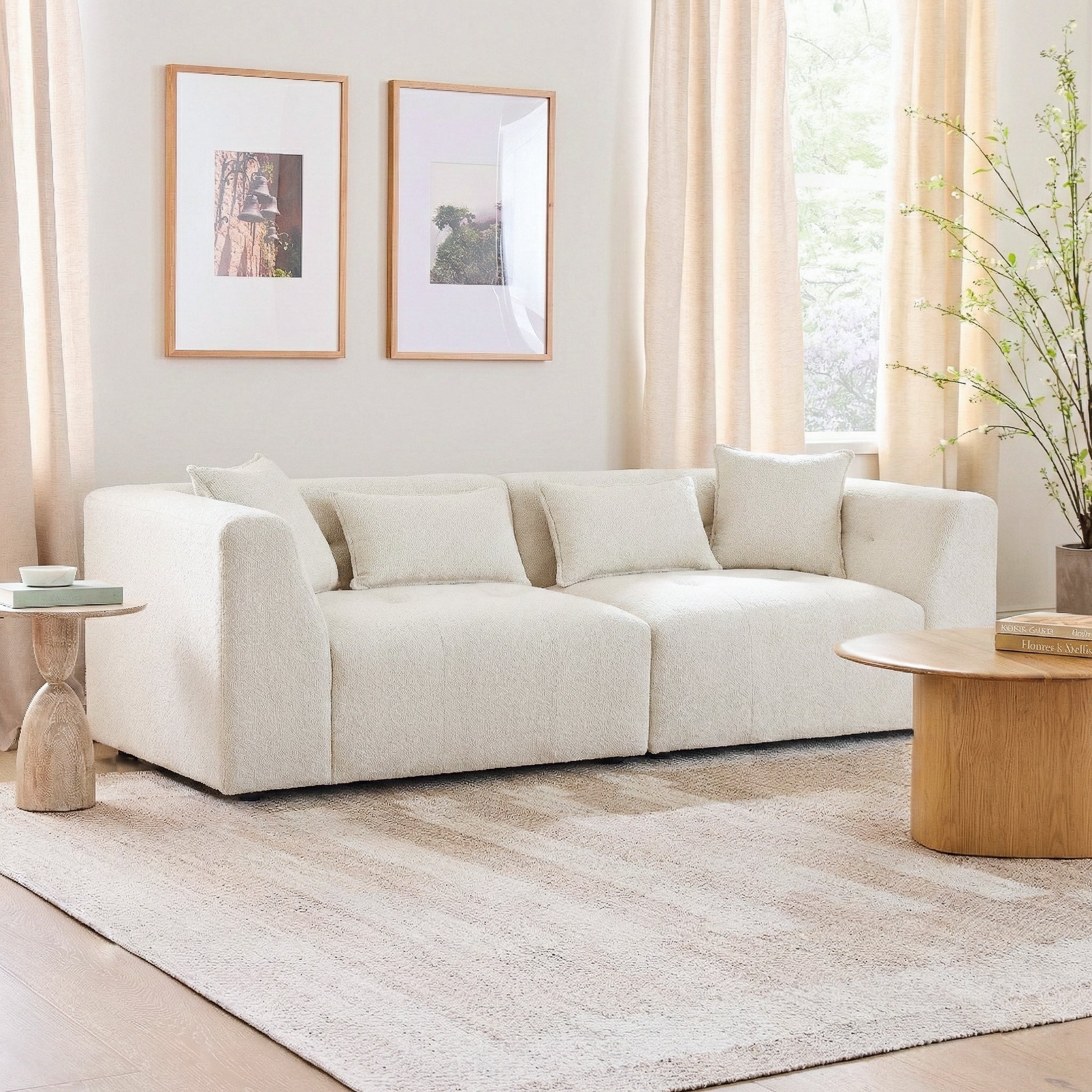 Beyond its high-end appearance, this sofa is built for the realities of everyday life. The durable frame promises lasting quality, and the easy-to-clean chenille fabric ensures your living space remains pristine with minimal effort. With easy assembly and included accent pillows, this gorgeous sofa is the perfect blend of practical design and luxury comfort.