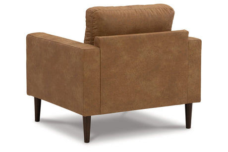 Warm Caramel Faux Leather: Many pieces in the Telora Collection are upholstered in a warm caramel-colored faux leather. This adds to the retro feel and provides a durable and easy-to-clean surface.