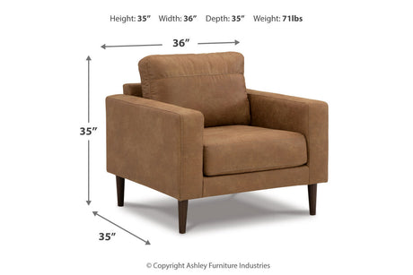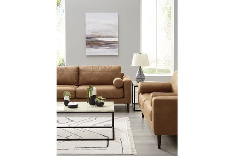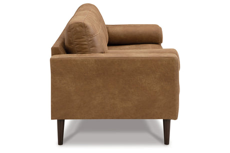 The Telora Collection by Ashley Furniture is a stylish and compact living room set perfect for smaller spaces. It offers a modern take on retro aesthetics with clean lines and a warm, inviting feel.