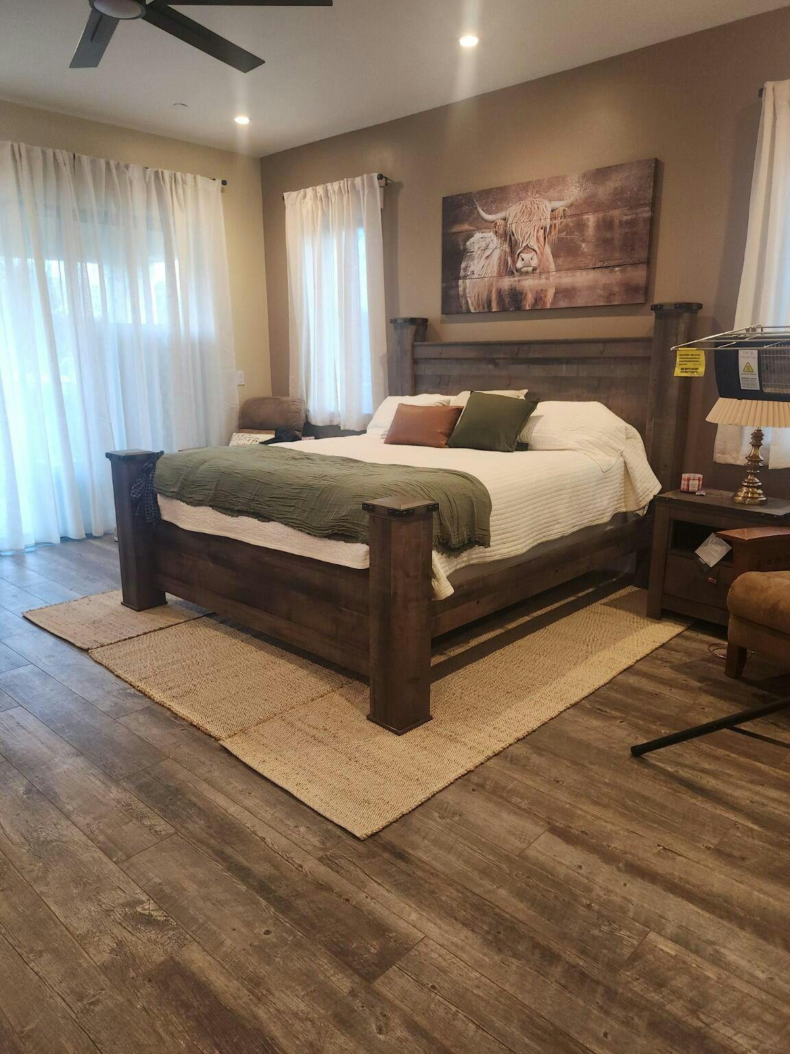 Giddy up your style. If you’re a cowboy or cowgirl at heart, this king poster bed matches your authentic sense of taste. Rustic finish, plank details and nailhead trim are an homage to reclaimed barn wood, making for a sophisticated look loaded with countrified charm. Mattress and foundation/box spring available, sold separately. Luna Furniture introduces Trinell King Poster Bed to enhance the beauty of your living spaces.