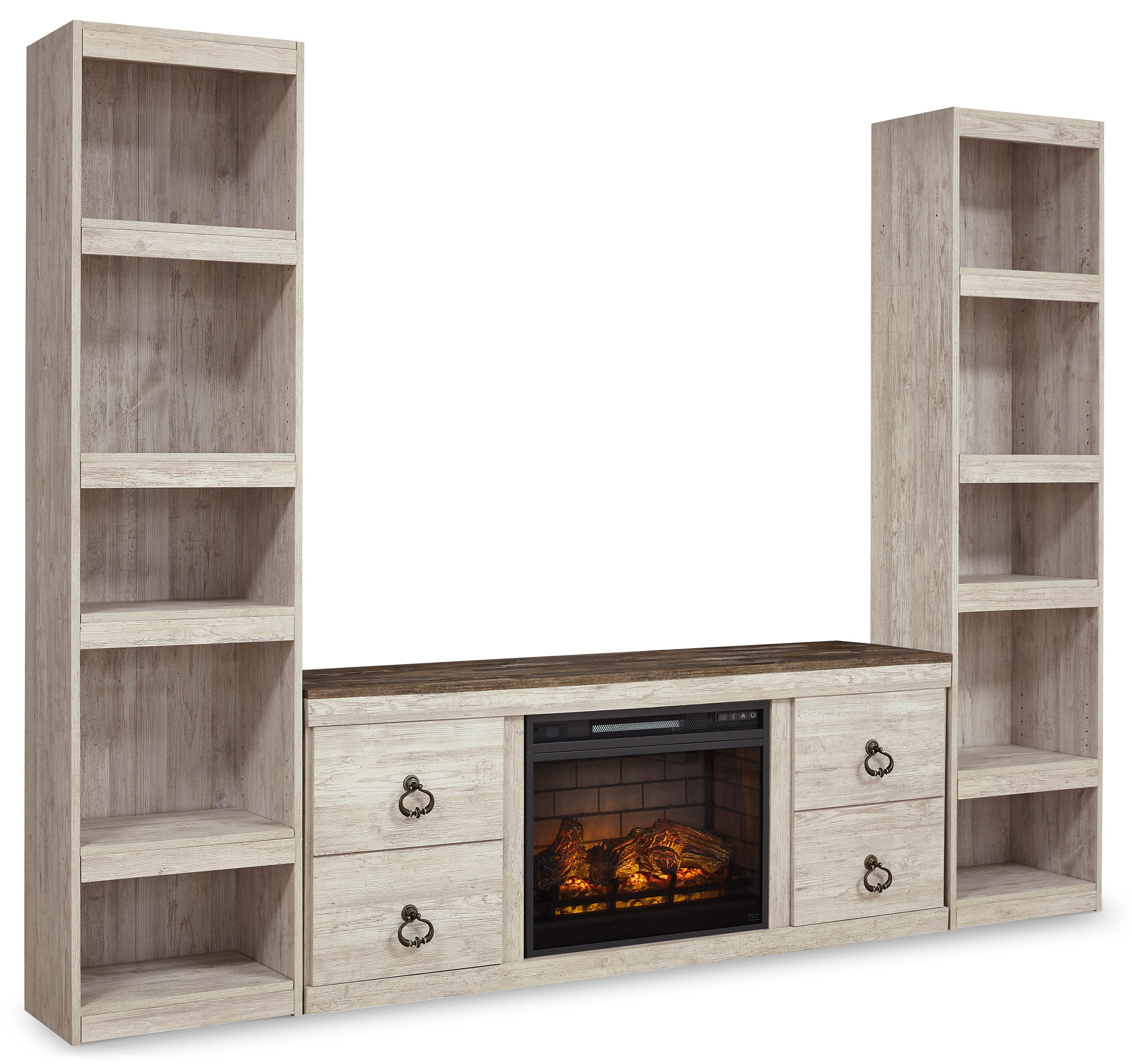 Willowton Whitewash 3-Piece Entertainment Center with Electric Fireplace