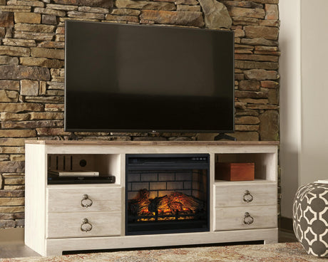 Willowton Whitewash 64" TV Stand with Electric Fireplace