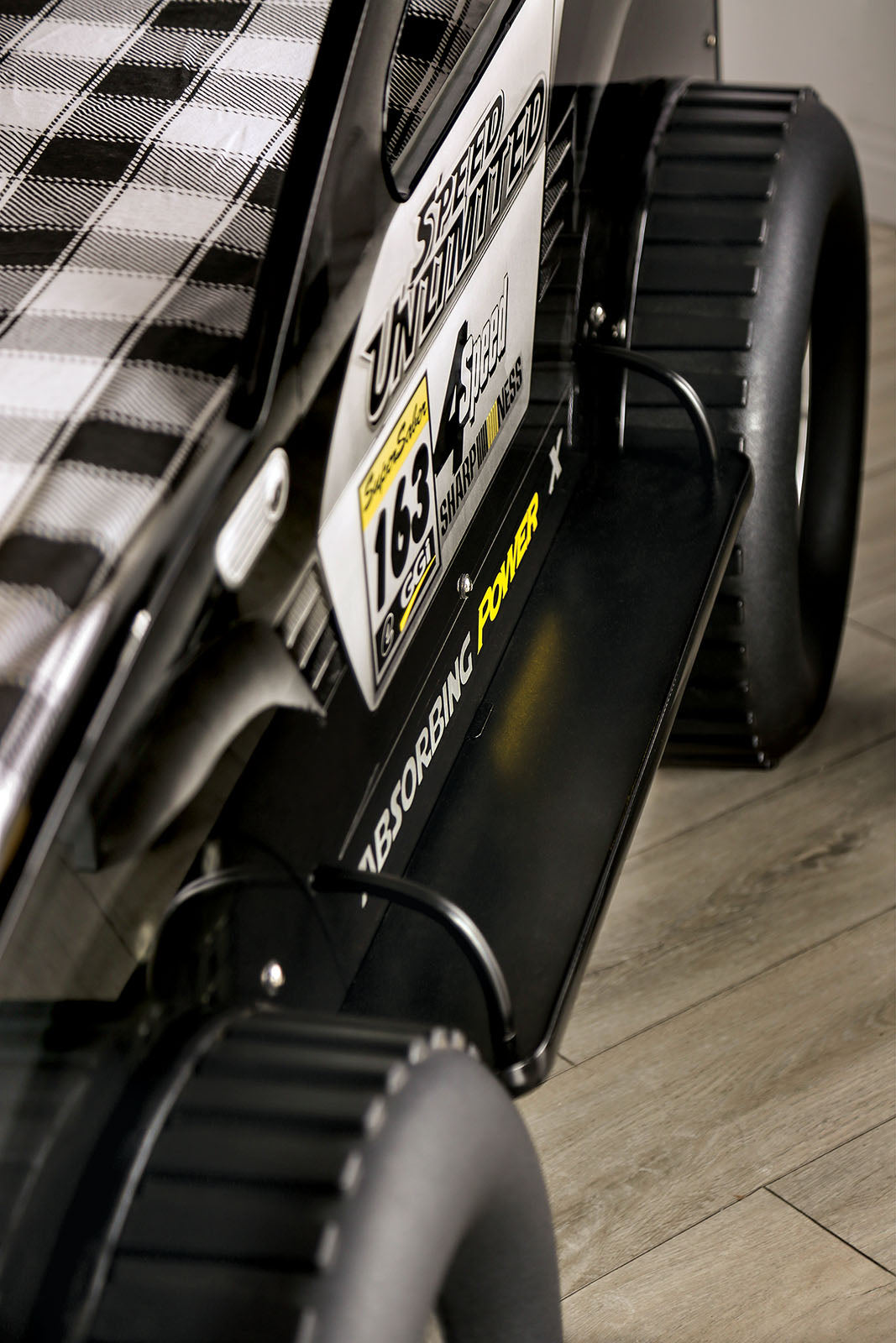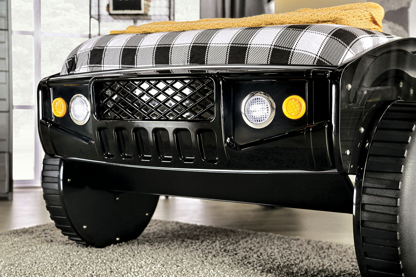 Now your child can experience the excitement of off-road racing in his/her own bedroom! This impressive bed boasts a glossy sturdy design, and is equipped with giant tires and working lights.