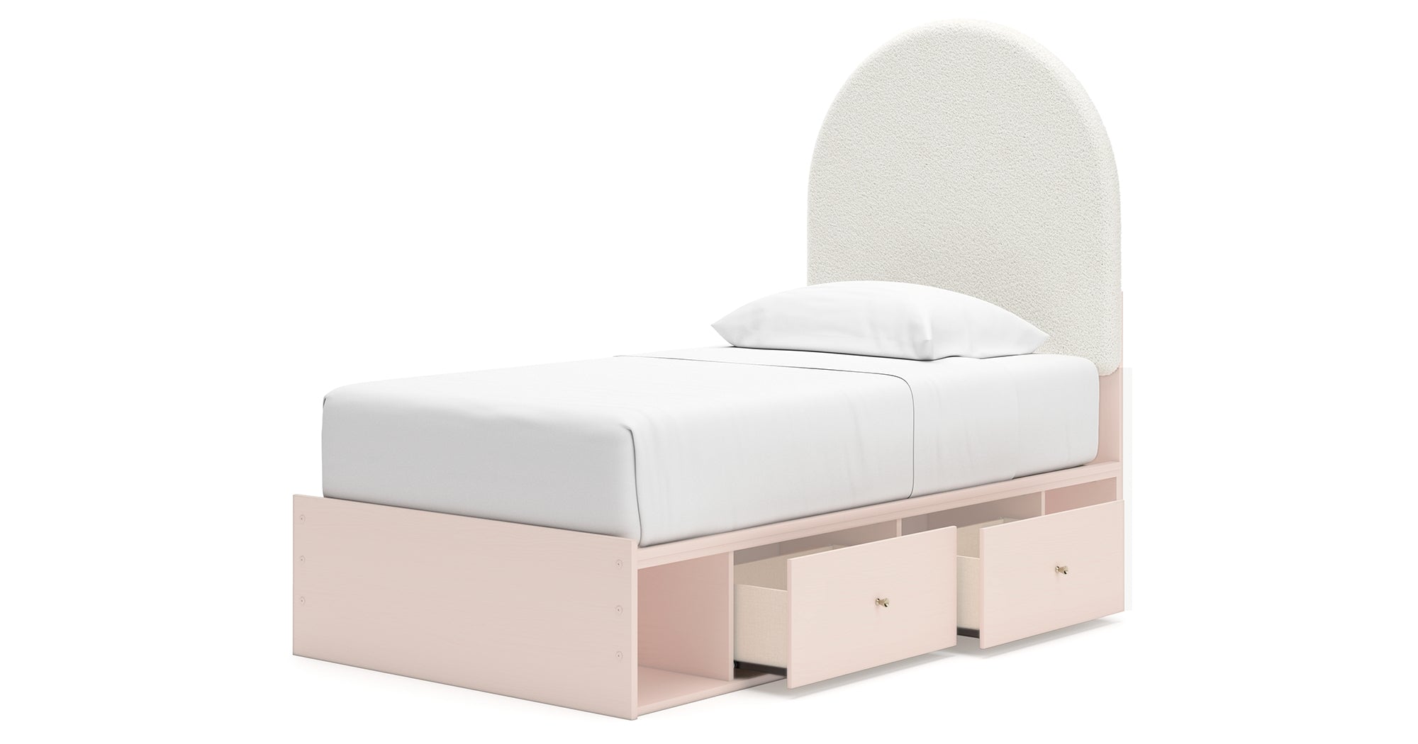 Wistenpine Blush Twin Upholstered Storage Platform Bed with 2 Drawers from Ashley Furniture - Luna Furniture
