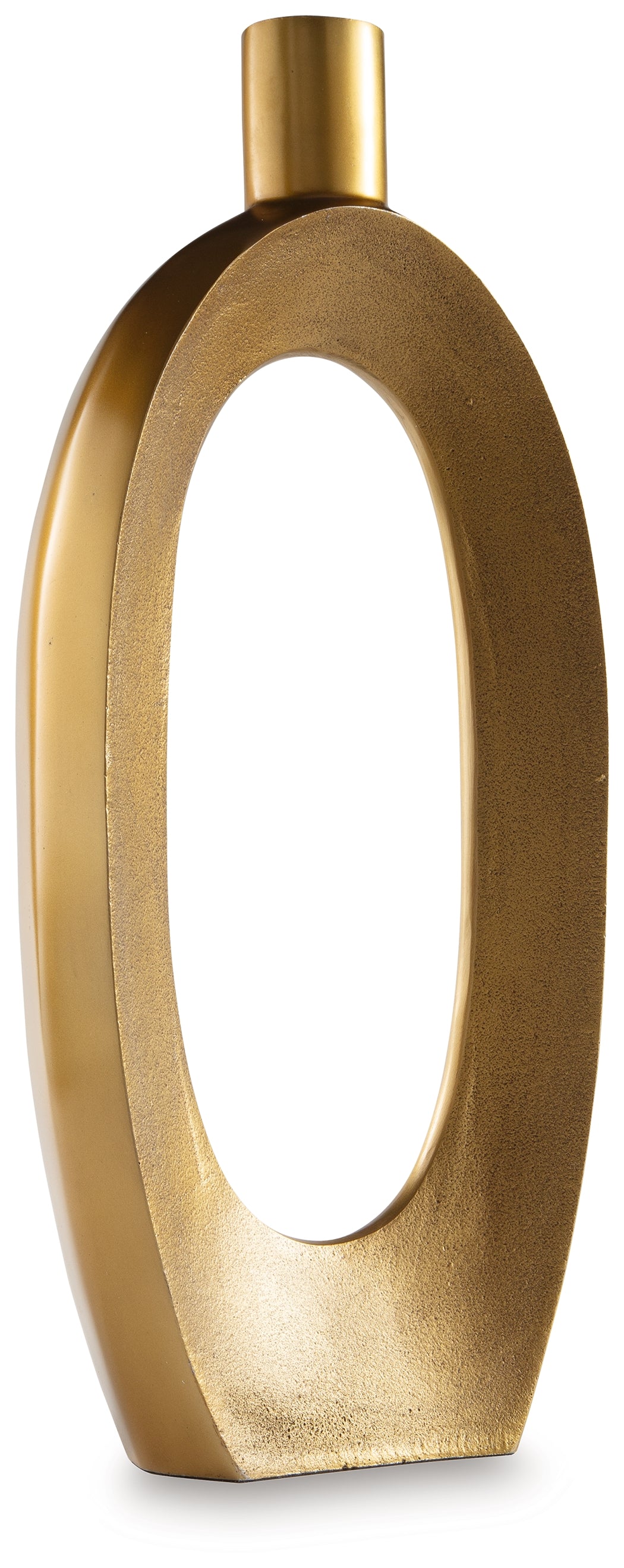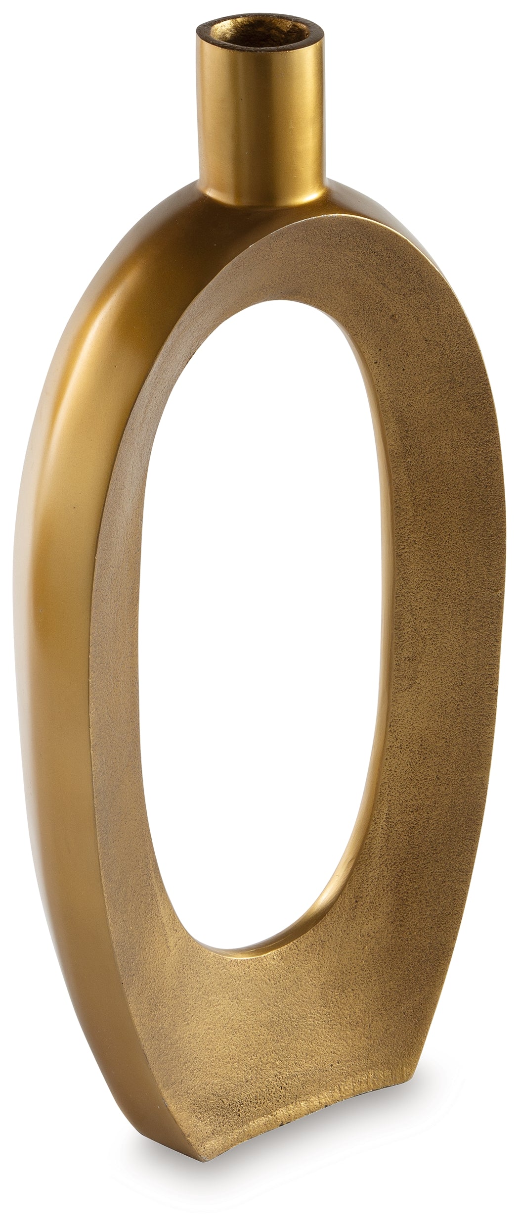 Geometric forms get a glam upgrade in this vase. Decidedly contemporary with its sculptural silhouette, it ushers a confidently curated vibe into your space. The goldtone finish brings an eye-catching metallic flair to your mantel, bookshelf or centerpiece arrangement. — Luna Furniture introduces Lawtonville Vase to enhance the beauty of your living spaces.