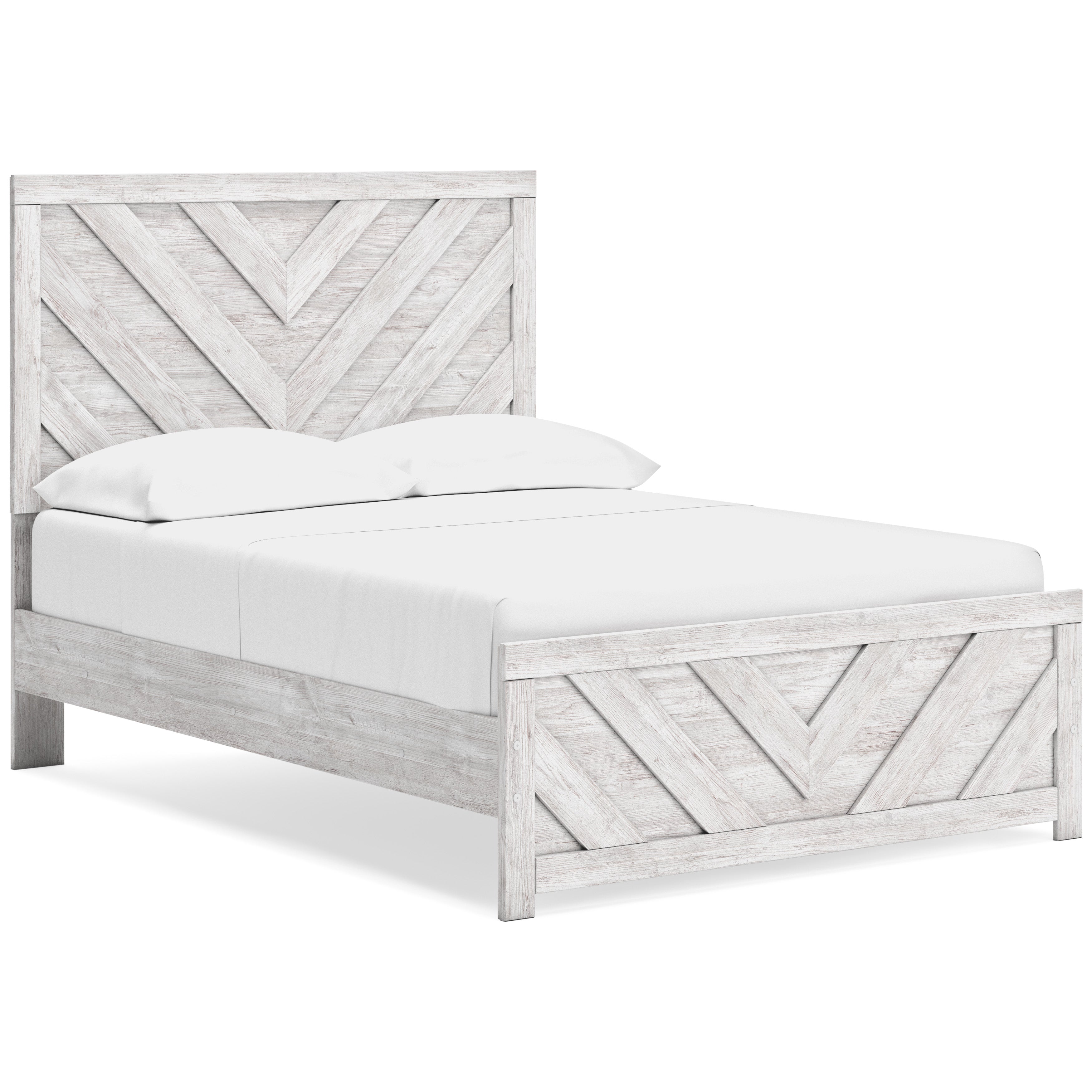 Charmingly designed, this panel bed embraces the aesthetics of countryside living and repurposes them for modern settings. Its whitewash paint, replicating the wear and tear of time, appeals to your love of vintage character. And a chic chevron pattern on the headboard and footboard keeps your bedroom effortlessly on trend.