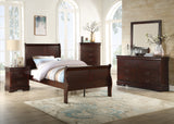 Transform your child's bedroom into a haven of style and comfort with the Louis Philip Cherry Sleigh Youth Bedroom Set from Crown Mark. This beautifully crafted collection embodies a traditional yet modern aesthetic, making it a versatile choice for various decor styles. The set features simple lines and smooth finishes, ensuring a warm and inviting atmosphere in any sleeping space.