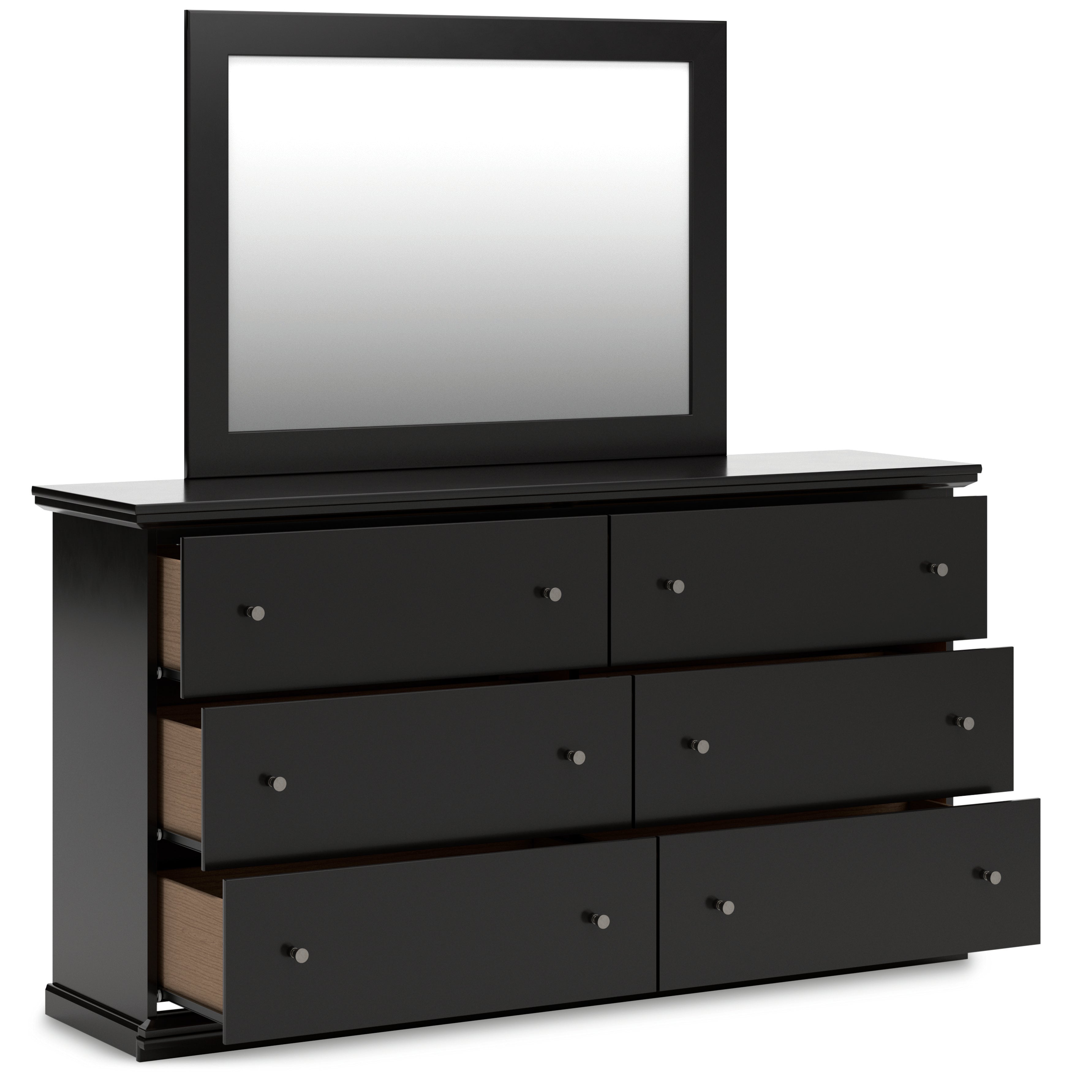 Clean, simple, and beautiful, this modern black panel bed is available in Twin and Full sizes, delivering understated elegance that fits both classic and contemporary bedrooms. The sleek solid black finish offers versatile styling, pairing effortlessly with a wide range of colors and décor. Crafted from durable engineered wood with high-quality decorative laminate, this bed is designed to provide the ideal balance of affordability, strength, and everyday durability. The complete bed frame includes the headboard, footboard, and rails, and it is designed to require a foundation or box spring for proper mattress support. Complete your space with the optional 5-piece bedroom set, including the Twin or Full Bed, Dresser, Mirror, Nightstand, and Chest, creating a cohesive look with practical bedroom storage and timeless modern style.