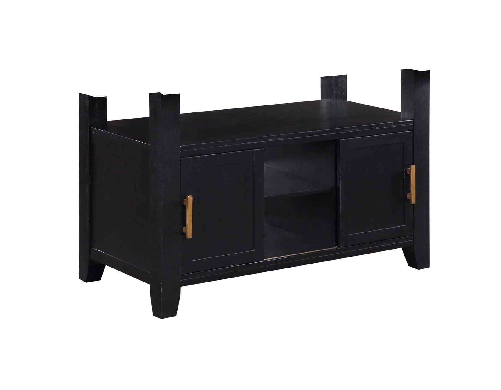 Storage is a valuable commodity in any dining room and the Yves Counter Storage Table provides a great functional centerpiece to any dining room. Modern style and a contrasting charcoal finish with oil rubbed brass accents makes for a sleek design statement as well as a great storehouse for China, placements, silverware or even homework. The 36-inch table height is ideal for preparing, dining or working.