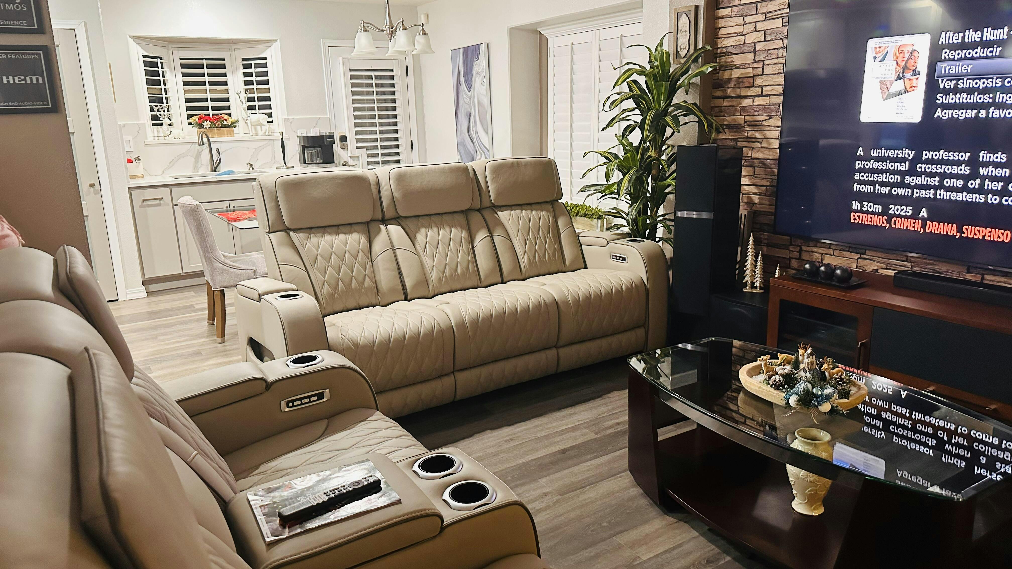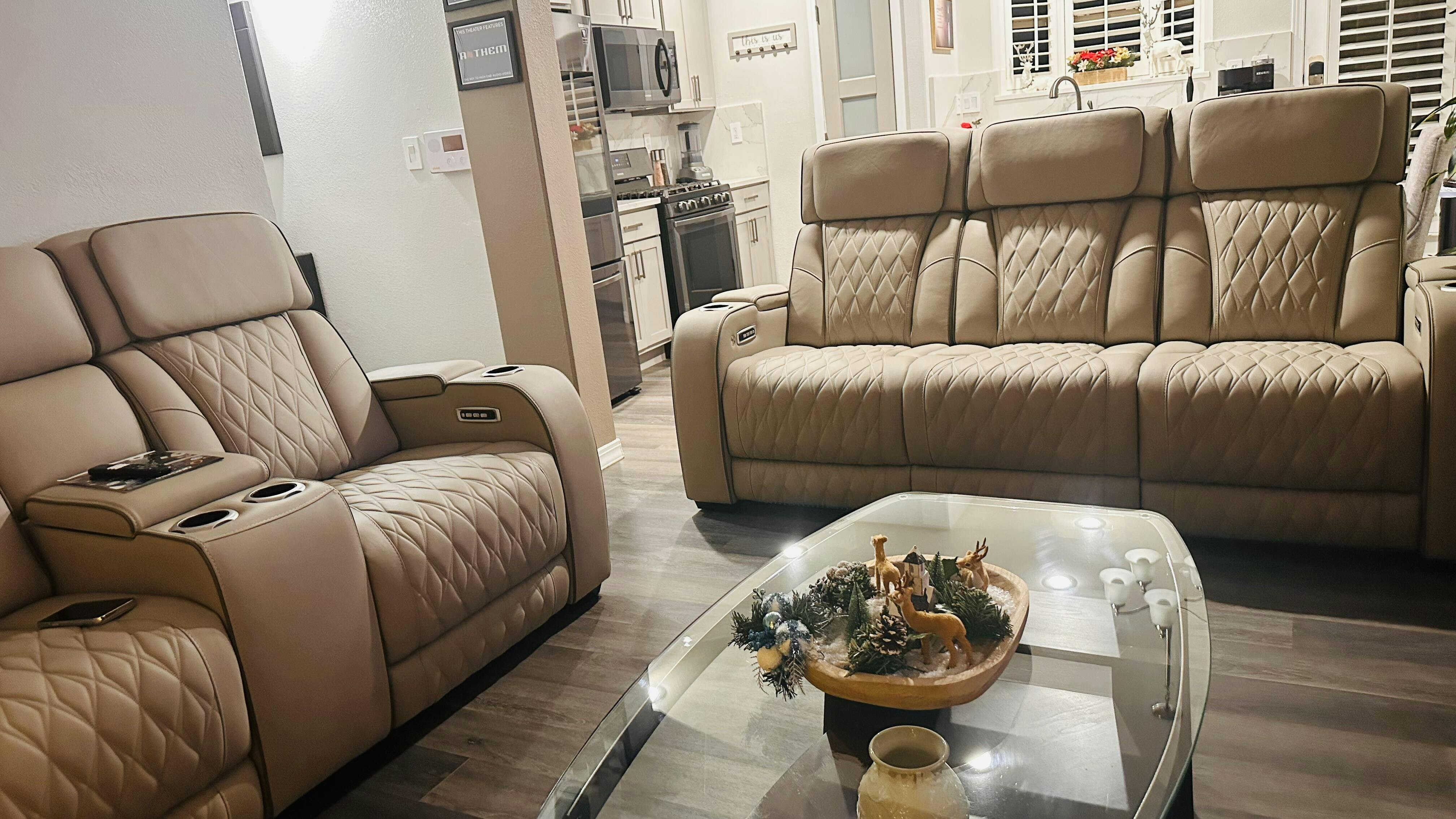 These recliners look and feel upscale. Friends and family compliment how modern they are, with wireless charging ,led lights and heating and the beautiful gray color.