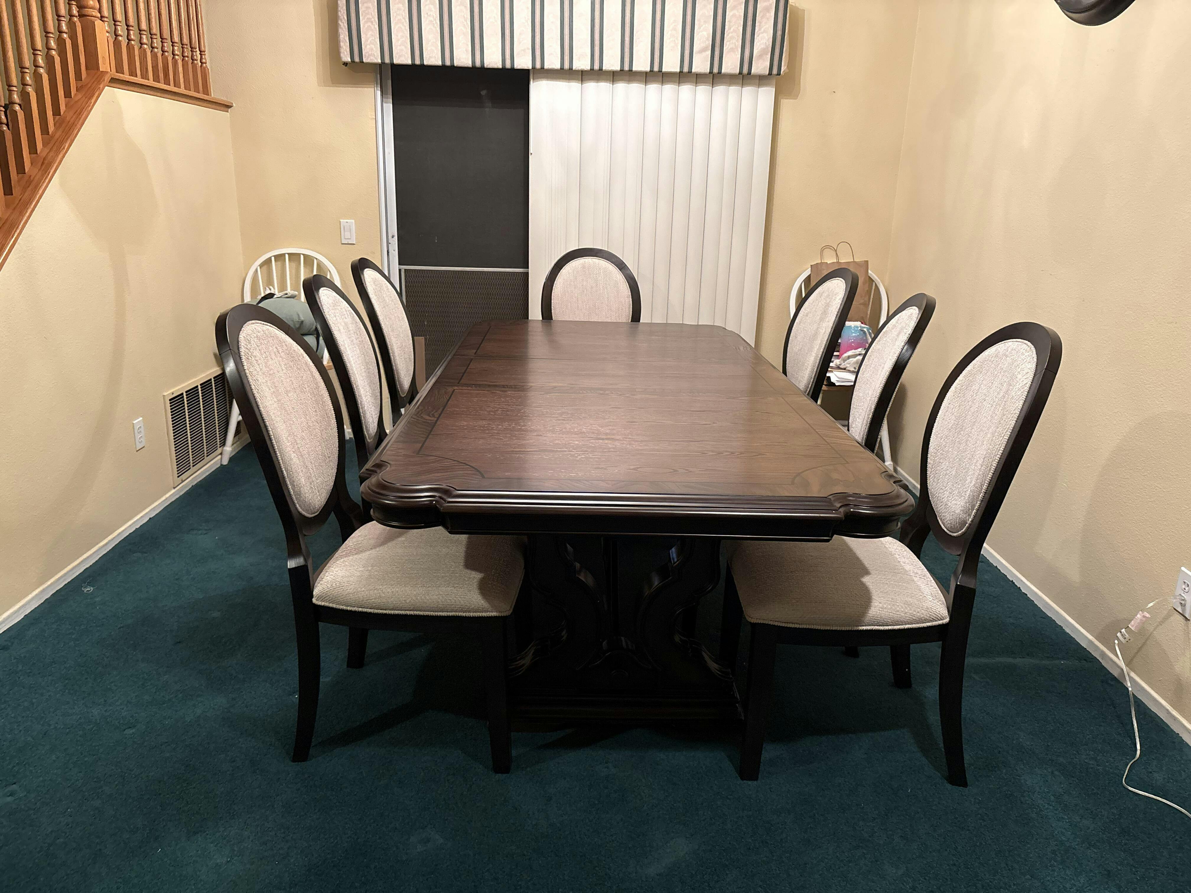 I purchase the Dinning table, and I am not disappointed. Is a very Beautiful and elegant table, I love that it extends from 72” it has two leaf of 18” each are removable when in use it extends all throughout 108” which I love. I use a 20” Chair Depth so I am able to fit 10 seatings spaces.