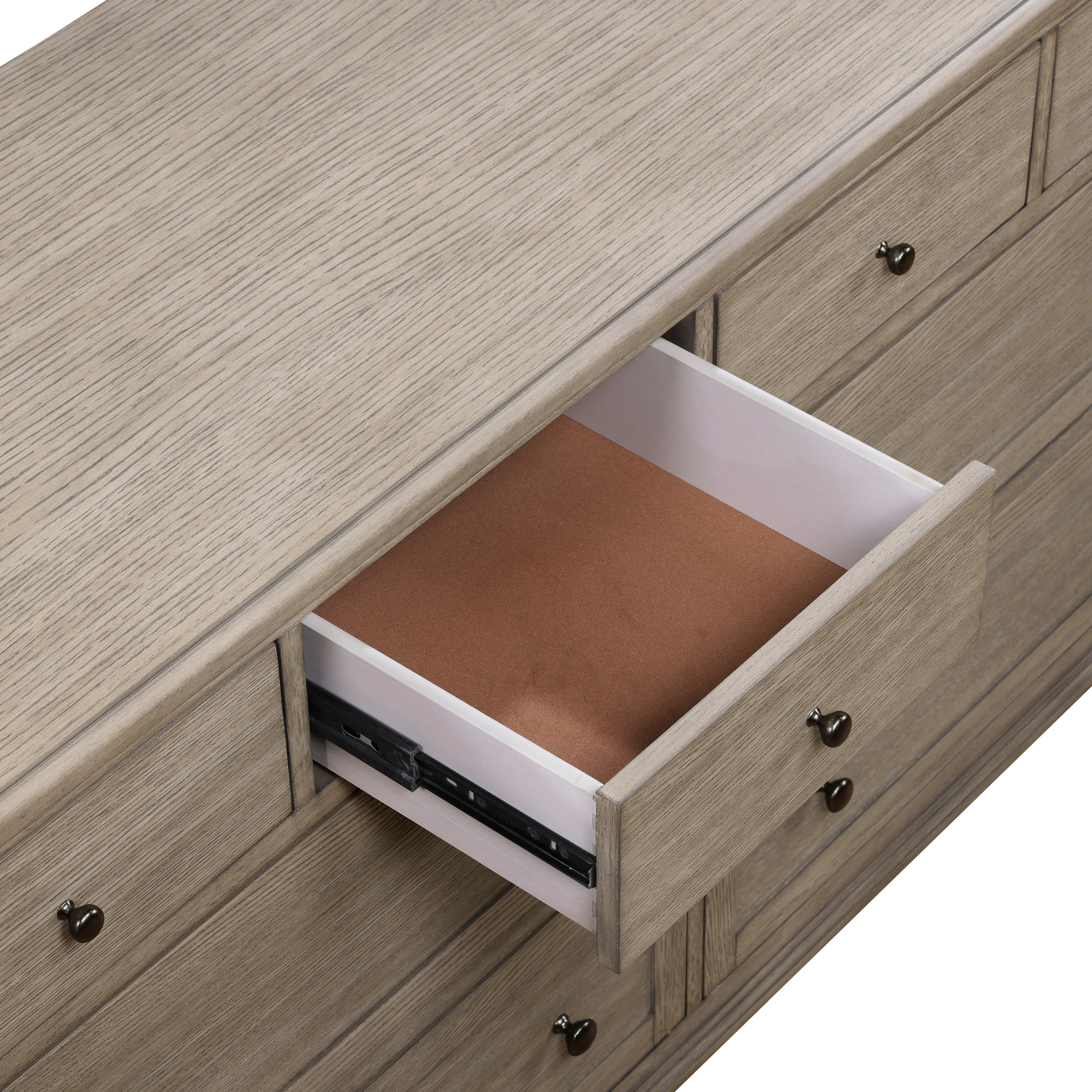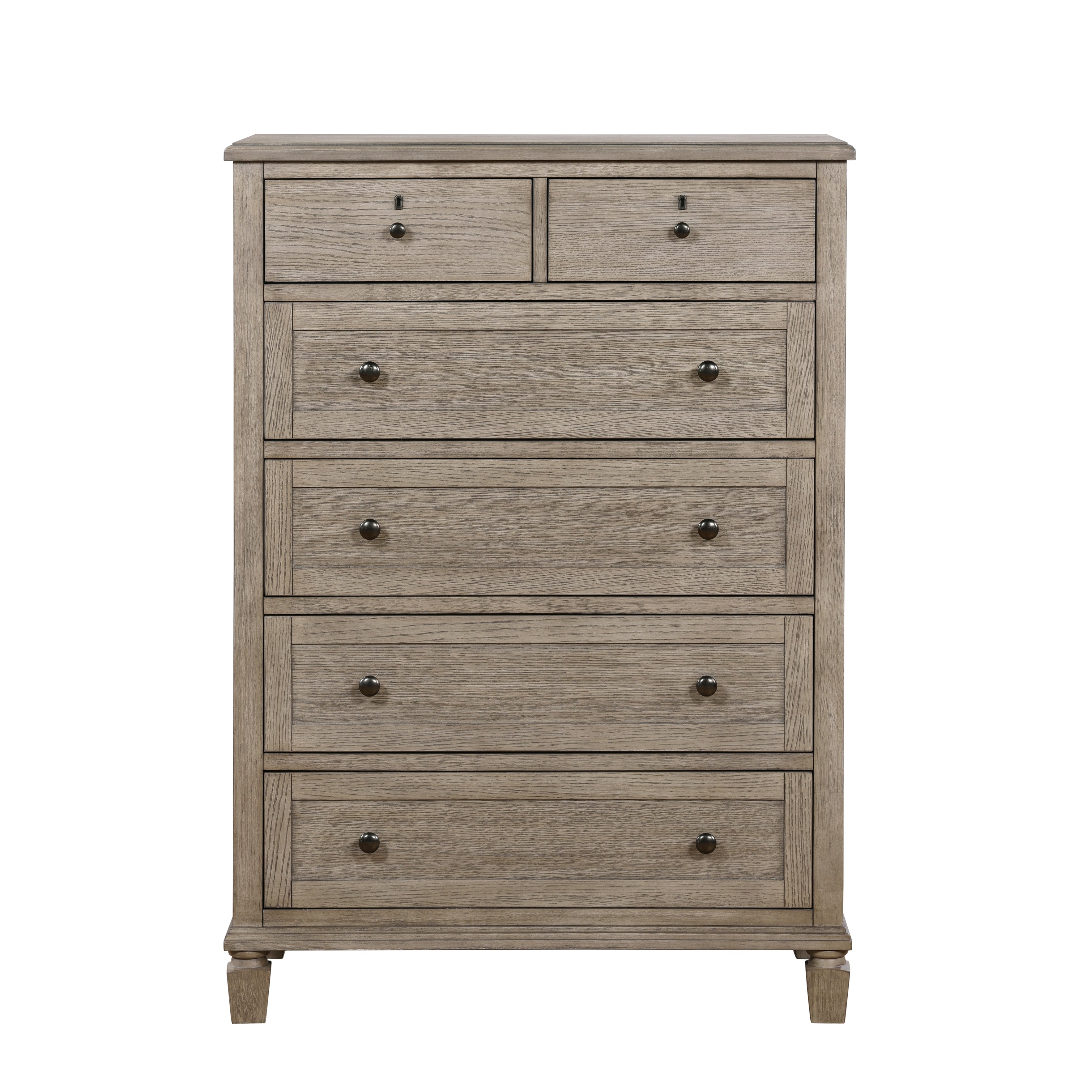 Marceline Gray Oak 5-Piece Bedroom Set (Queen Bed, Nightstand, Dresser, Mirror, Chest)