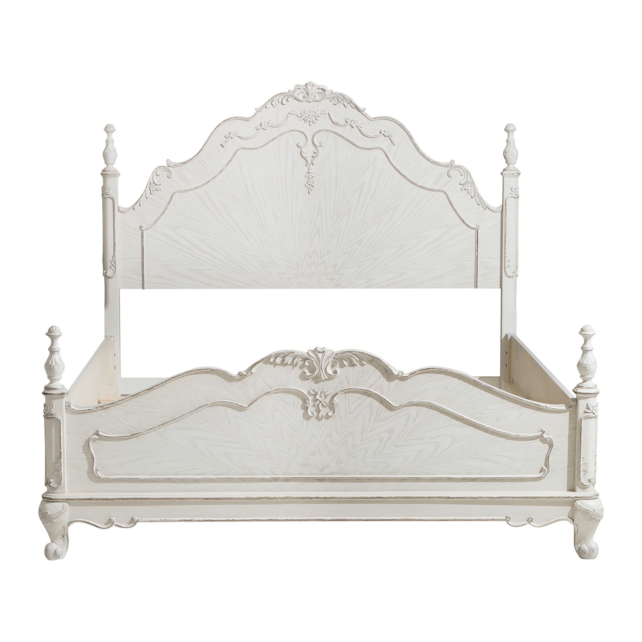 The Cinderella Collection is your little child’s dream come true. The Victorian styling incorporates traditional floral motif carving details on the white with gray rub-through finished queen bed that will create the feeling of stepping into a fairy tale. Carved finials top the corner posts of each post further lending to the classic look. Chest, dresser, mirror, nightstand, TV armoire, lingerie chest, desk, hutch, desk chair, daybed, twin canopy poster bed, twin trundle, full canopy poster bed, twin bed and full bed are also available.
