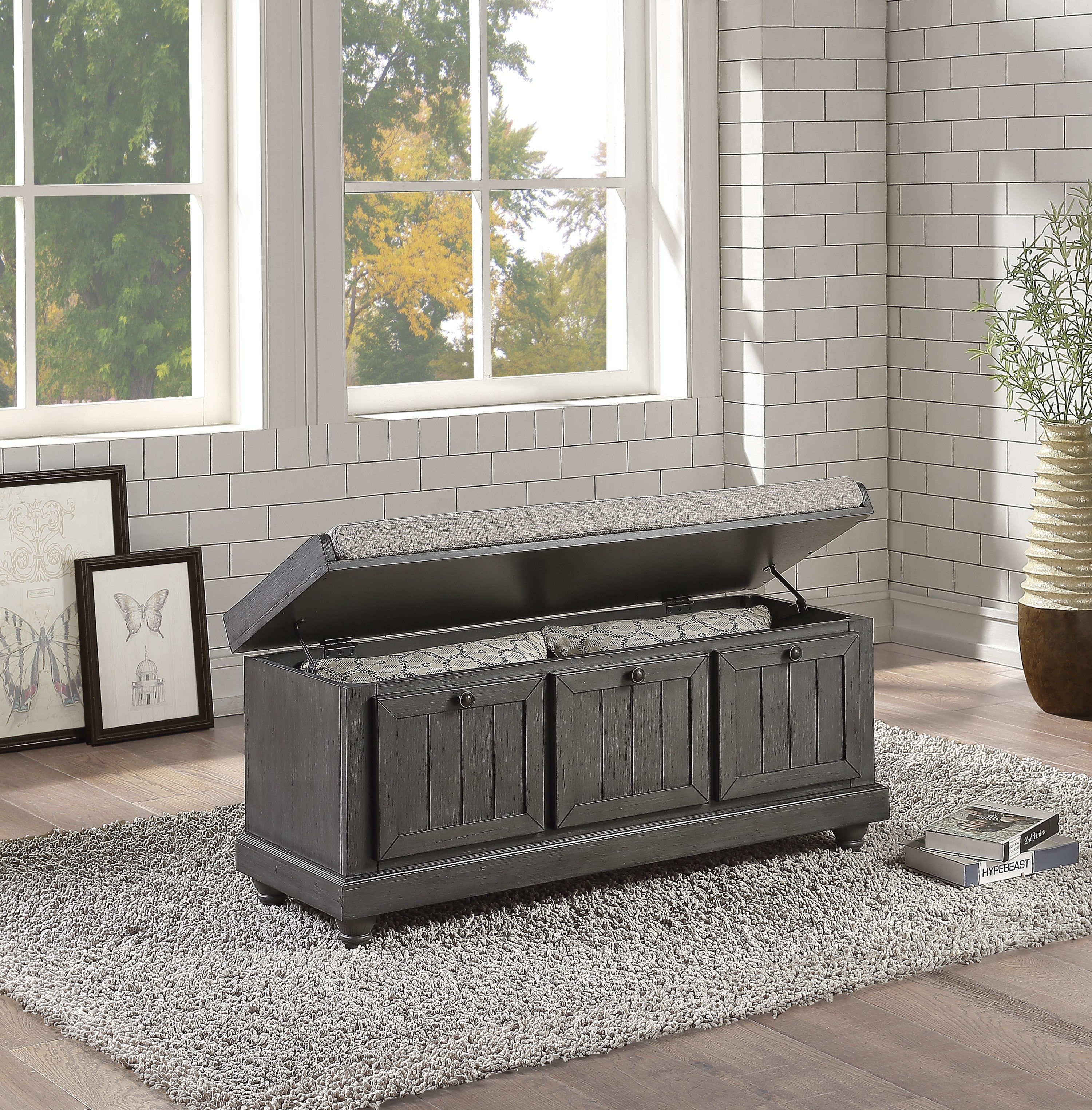 Woodwell Dark Gray Lift Top Storage Bench