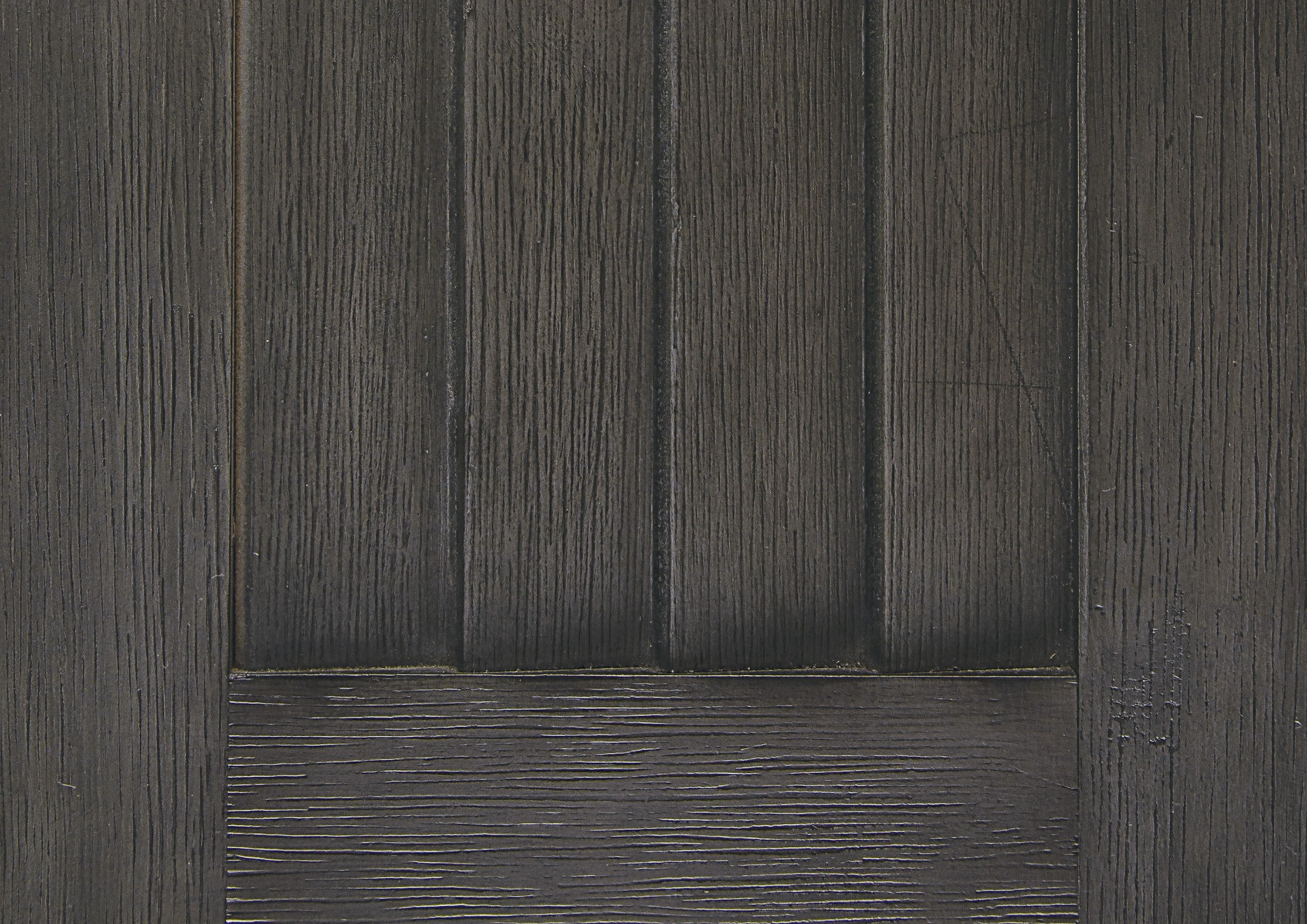 - Distressed dark gray finish