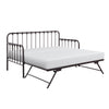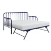 Classic lines and accenting provide a timeless look to the design of the Constance Collection. The metal daybed’s blue finish lends unique character to the design of your bedroom. The lift-up trundle provides convenient expansion of the sleep area, with its folding legs quickly engaging to bring the unit to full height while the casters allow for ease of storage.