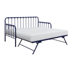 Classic lines and accenting provide a timeless look to the design of the Constance Collection. The metal daybed’s orange finish lends unique character to the design of your bedroom. The lift-up trundle provides convenient expansion of the sleep area, with its folding legs quickly engaging to bring the unit to full height while the casters allow for ease of storage.