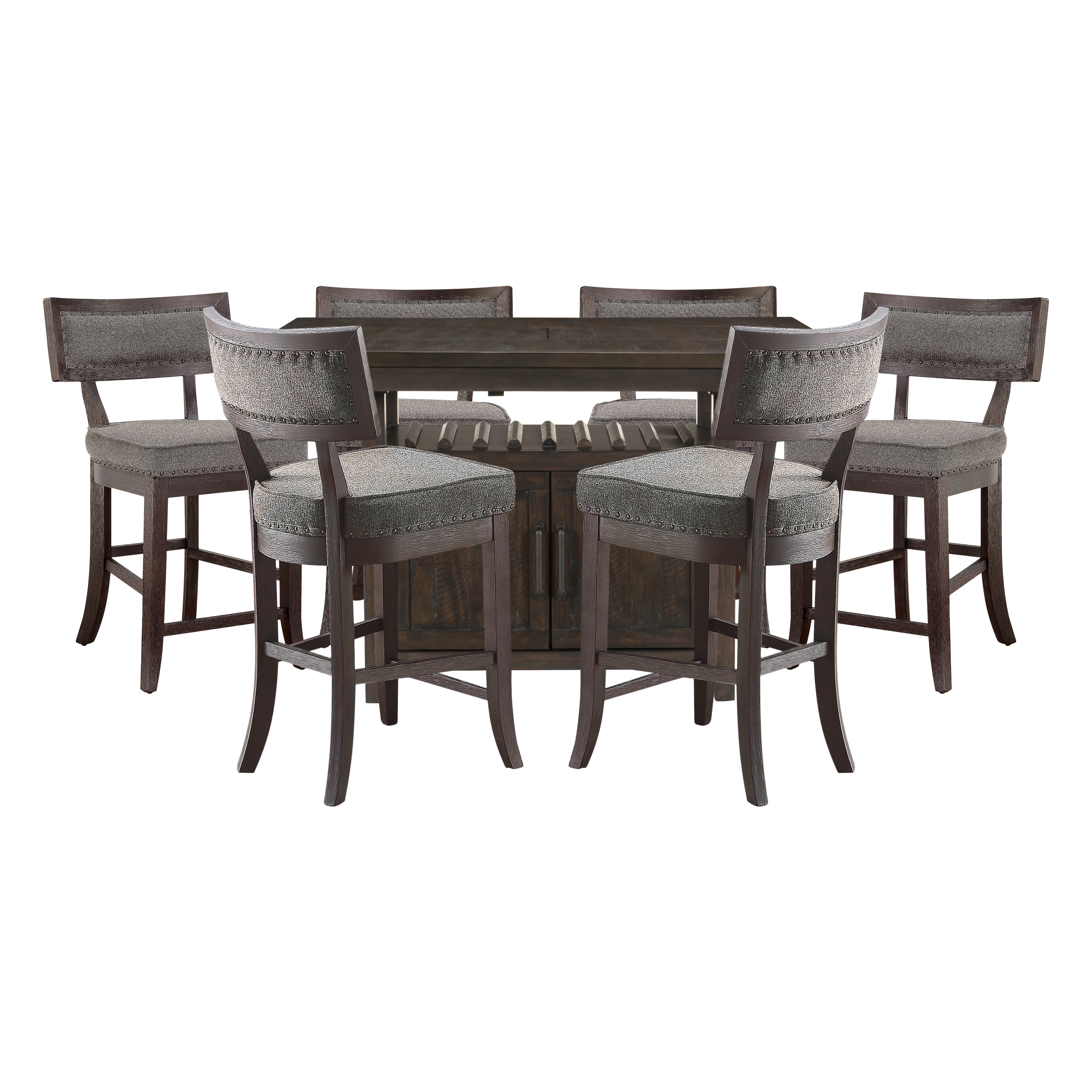 Designed for your home’s rustic aesthetic, the Oxton Collection provides an ample platform for your mealtime and social activities. The rectangular counter height tabletop is supported by a functional storage base, allowing for discrete placement of your tabletop accessories. Contoured-back, wood-framed, 24-inch height chairs feature nailhead accent and luxurious to the touch fabric seats that perfectly complement the rustic look of the Oxton collection.