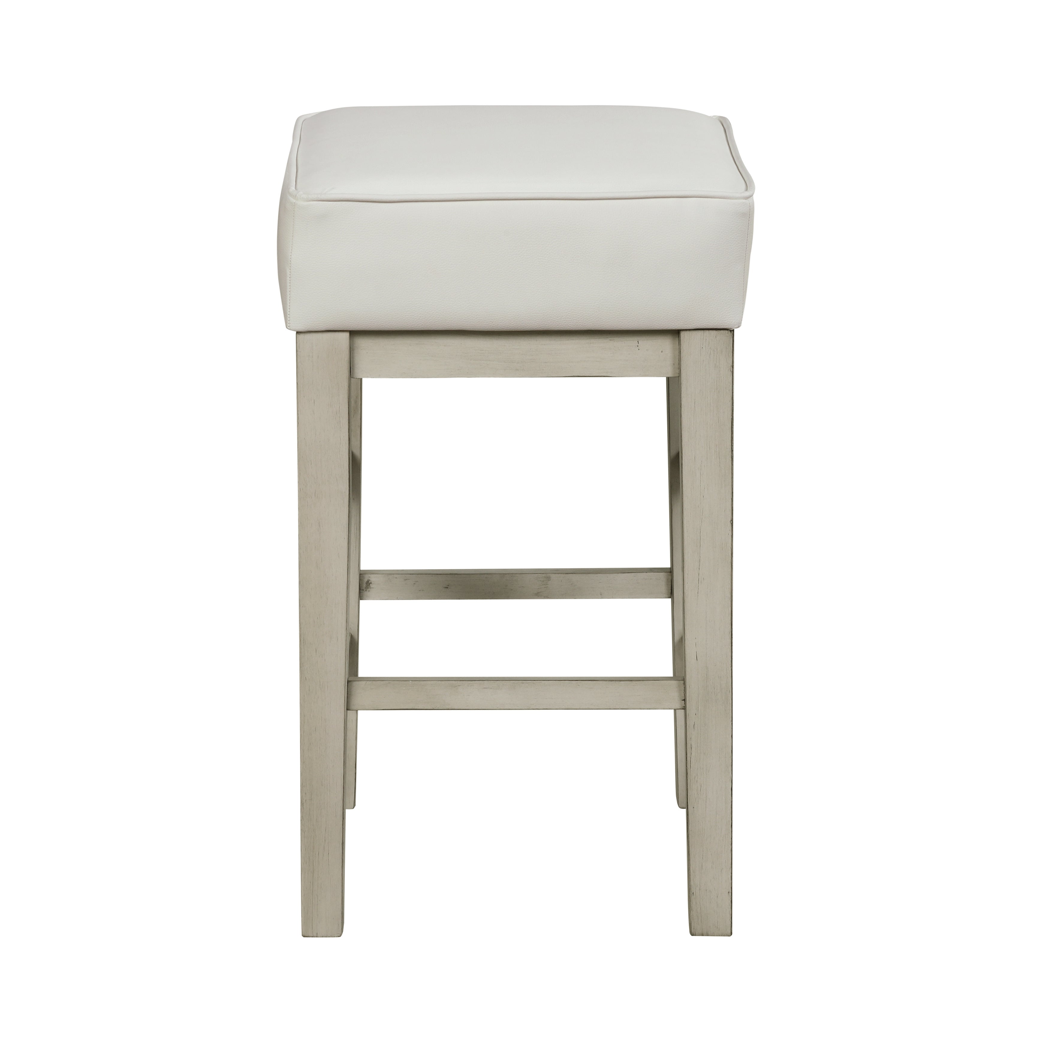 Transitional styling paired with versatility of selection makes the Pittsville Collection a perfect addition to your home’s casual dining spaces. Whether pairing with a table that you already have, adding seating to your countertop or casual entertaining space, the 24-inch counter height stool will be the perfect fit. The square white faux leather seat is paired with white finished wood framing for decorative versatility.