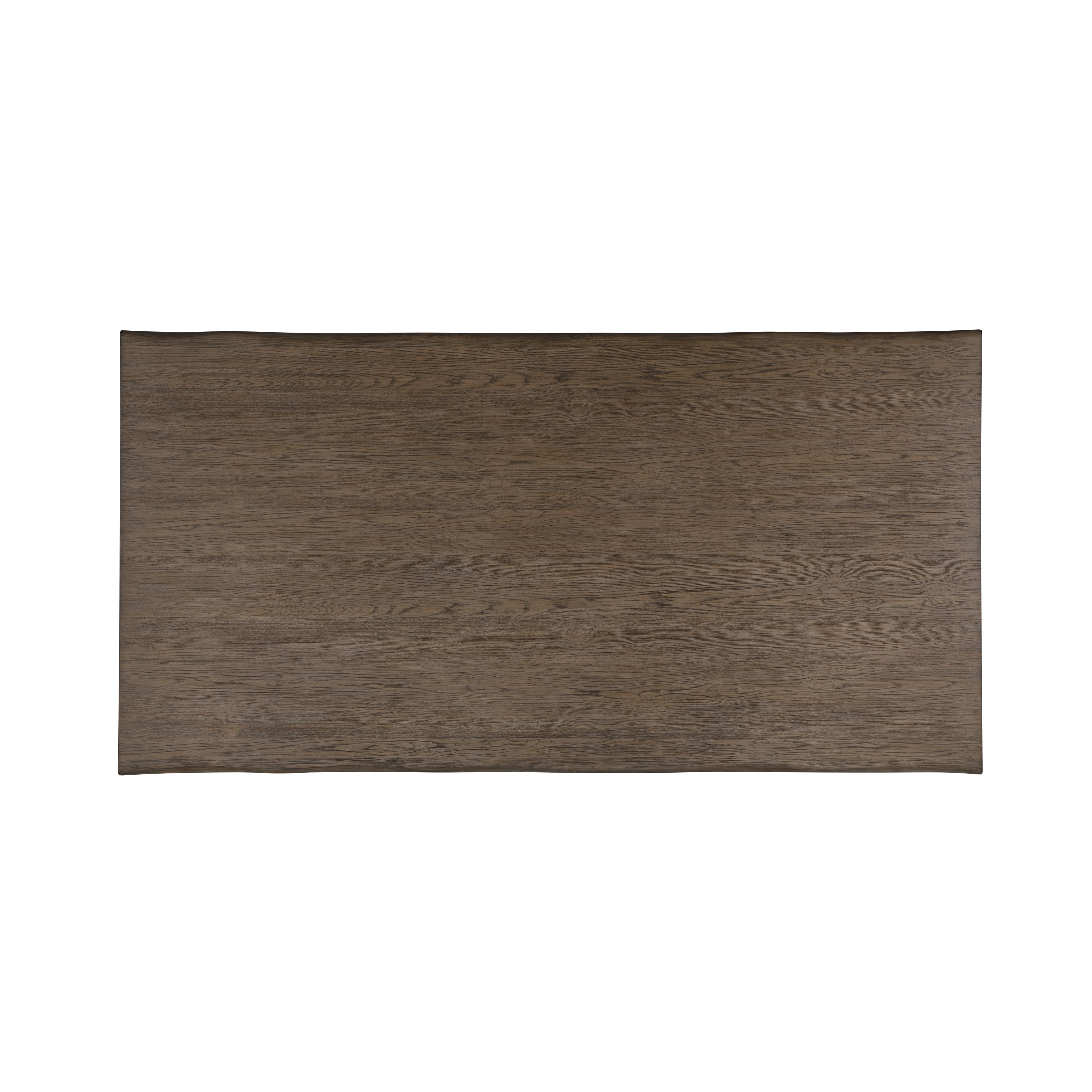 Create a modern and inviting dining space with this oak veneer dining table. Featuring a tabletop crafted from oak veneer and engineered wood in a natural oak finish, paired with a sleek black powder-coated metal base, this table offers a blend of rustic warmth and contemporary style. Comfortably seating six, it's perfect for family meals or dinner parties. The durable construction and minimalist design make this table a versatile and stylish centerpiece for any dining room or kitchen. Assembly is required.