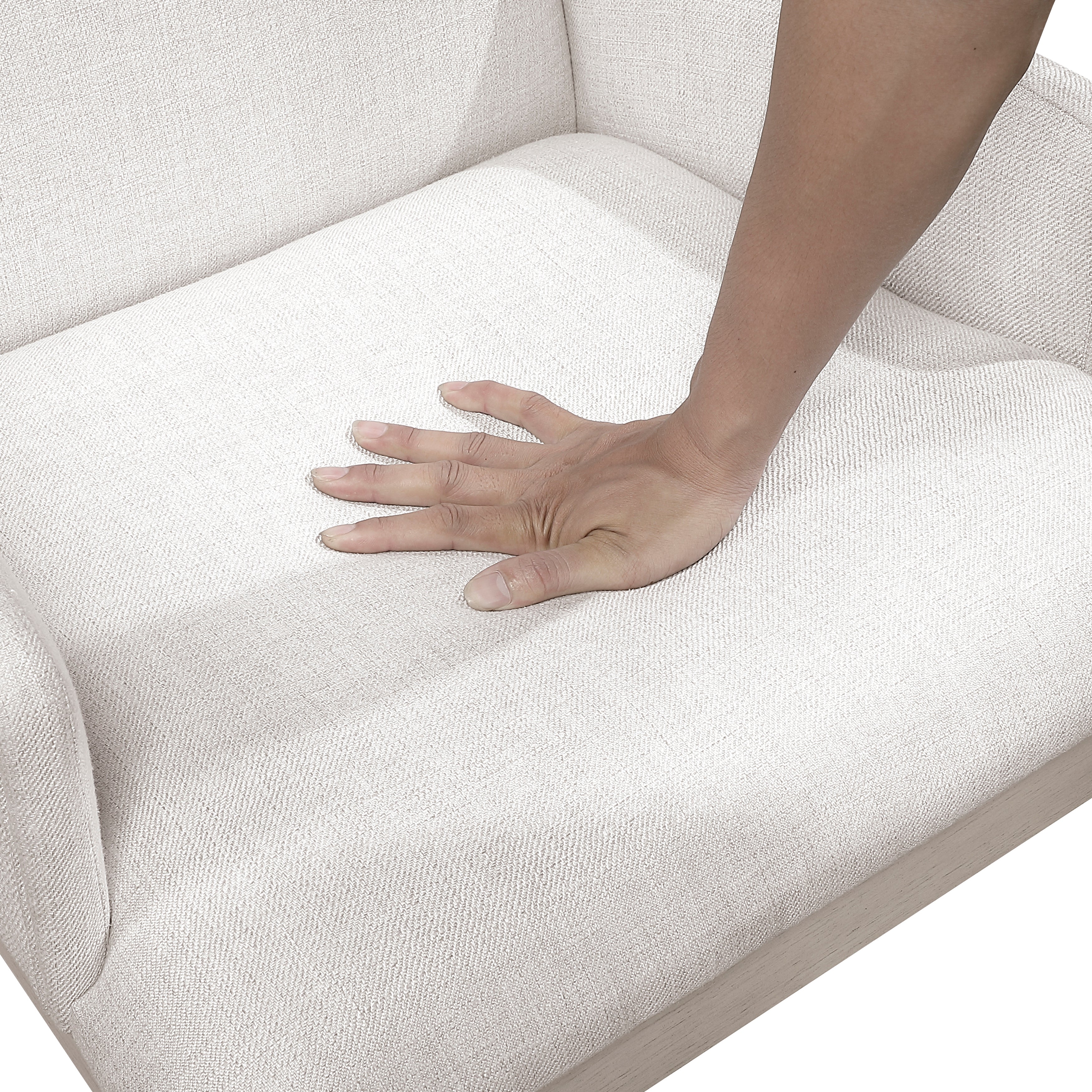 Enhance your dining room or living space with this exquisite antique white arm chair, a perfect blend of rustic farmhouse charm and traditional elegance. The sturdy wood frame features a sophisticated distressed finish and a unique exposed wood support back design that serves as a stylish focal point. Experience premium comfort with the plush ivory textured fabric upholstered seat, designed for long-lasting durability and style. With a robust 250lb weight capacity, this versatile accent chair offers both reliable support and timeless designer appeal for any home.