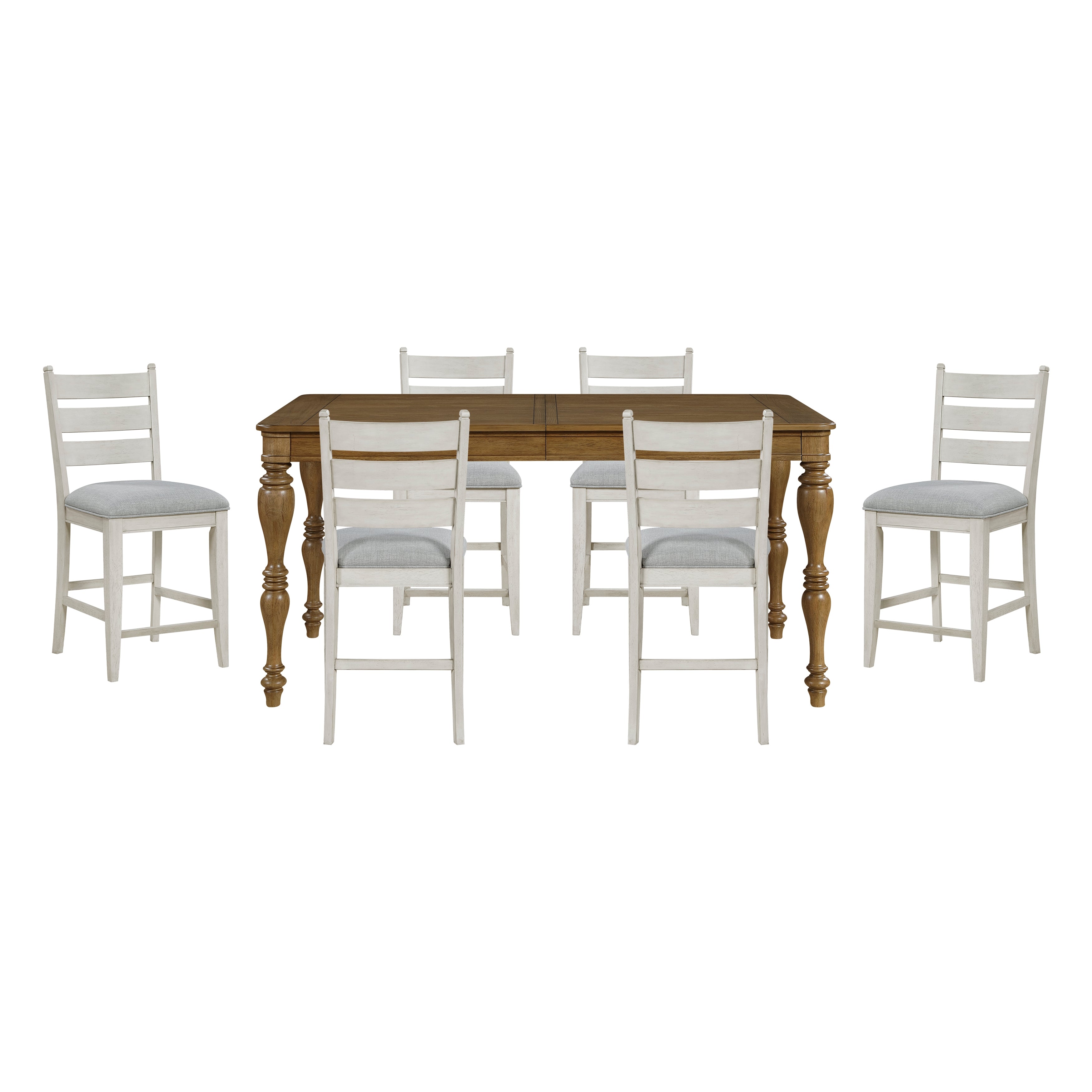 Wyatt Brown/Weathered White/Gray 7-Piece 91" Extendable Counter Height Set