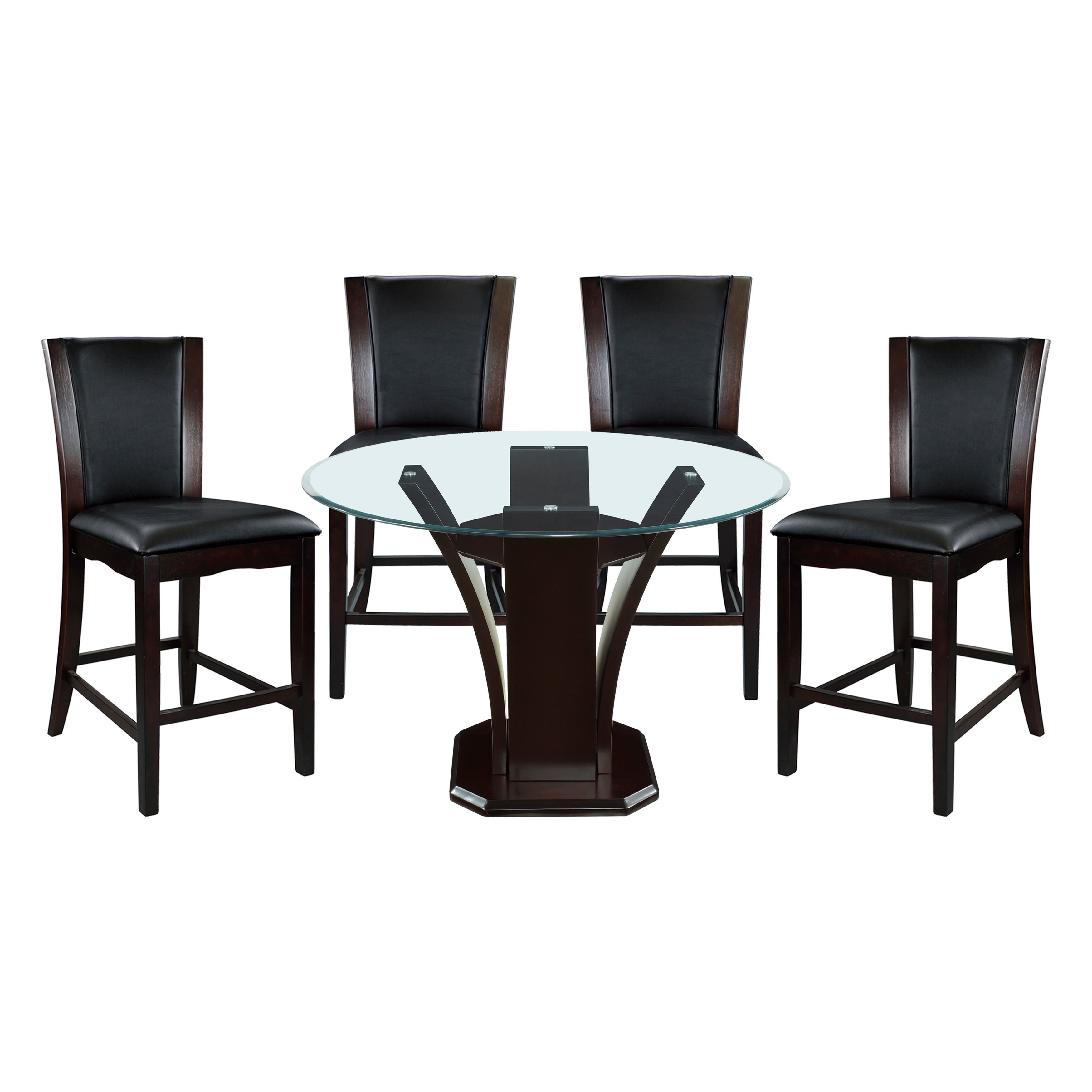 Daisy Espresso/Dark Brown 5-Piece 54" Glass-Top Round Counter Height Set