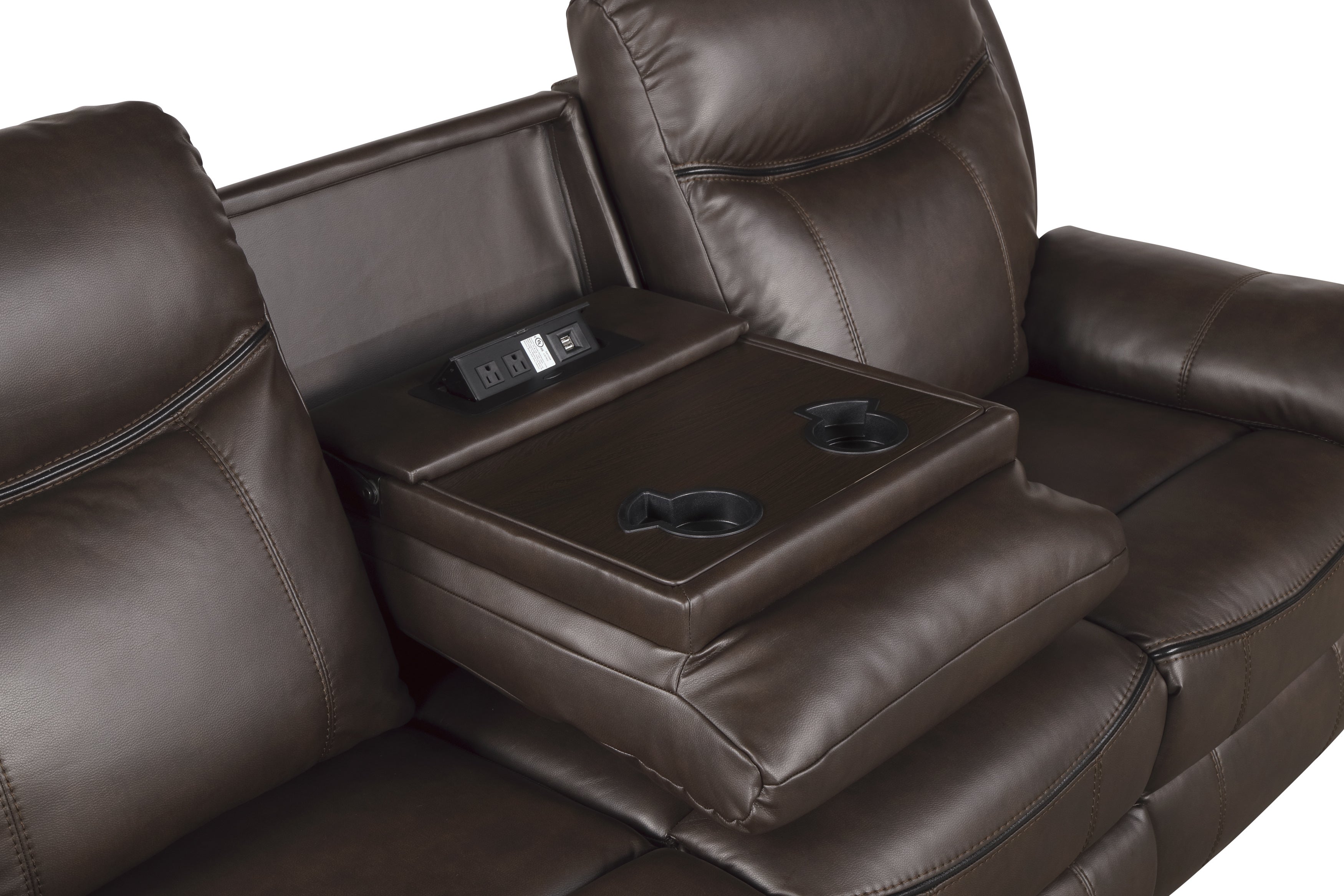 | 8206BRW-3 Double Reclining Sofa with Center Drop-Down Cup Holders, Receptacles, Hidden Drawer and USB Ports | 1 | 88.5 x 39 x 41H | 87.5 x 33 x 30H | 1 |