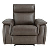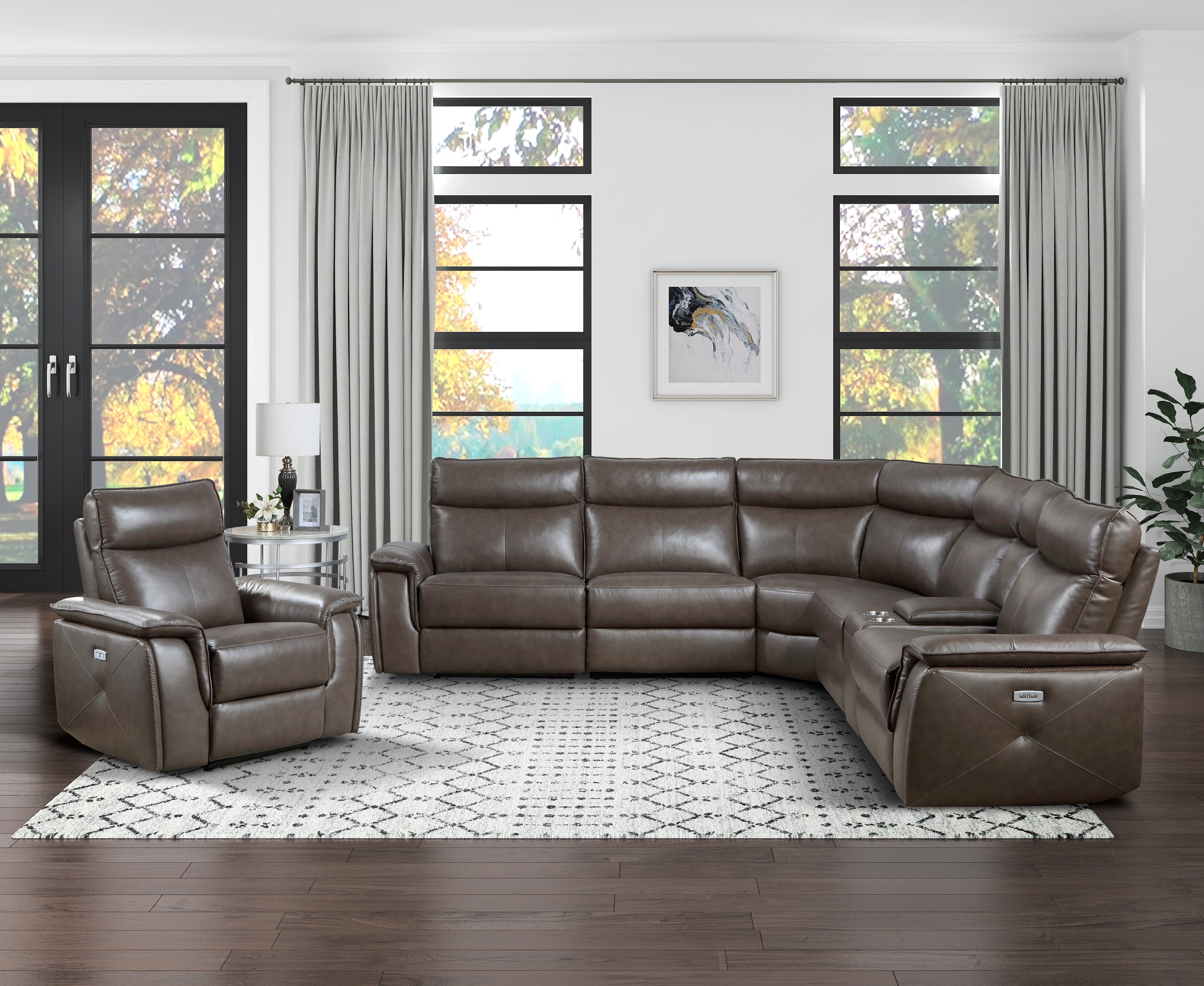 Providing additional ample seating for your friends and family is the Maroni Collection. The chair is a USB port enhanced power recliner. Dark Brown top-grain leather covers the collection where your body touches with faux leather covering the remaining areas. The power reclining mechanism brings you to your desired position with a touch of the button. Providing additional function to the chair is the power operated headrest that allows you to further customize your comfort experience.