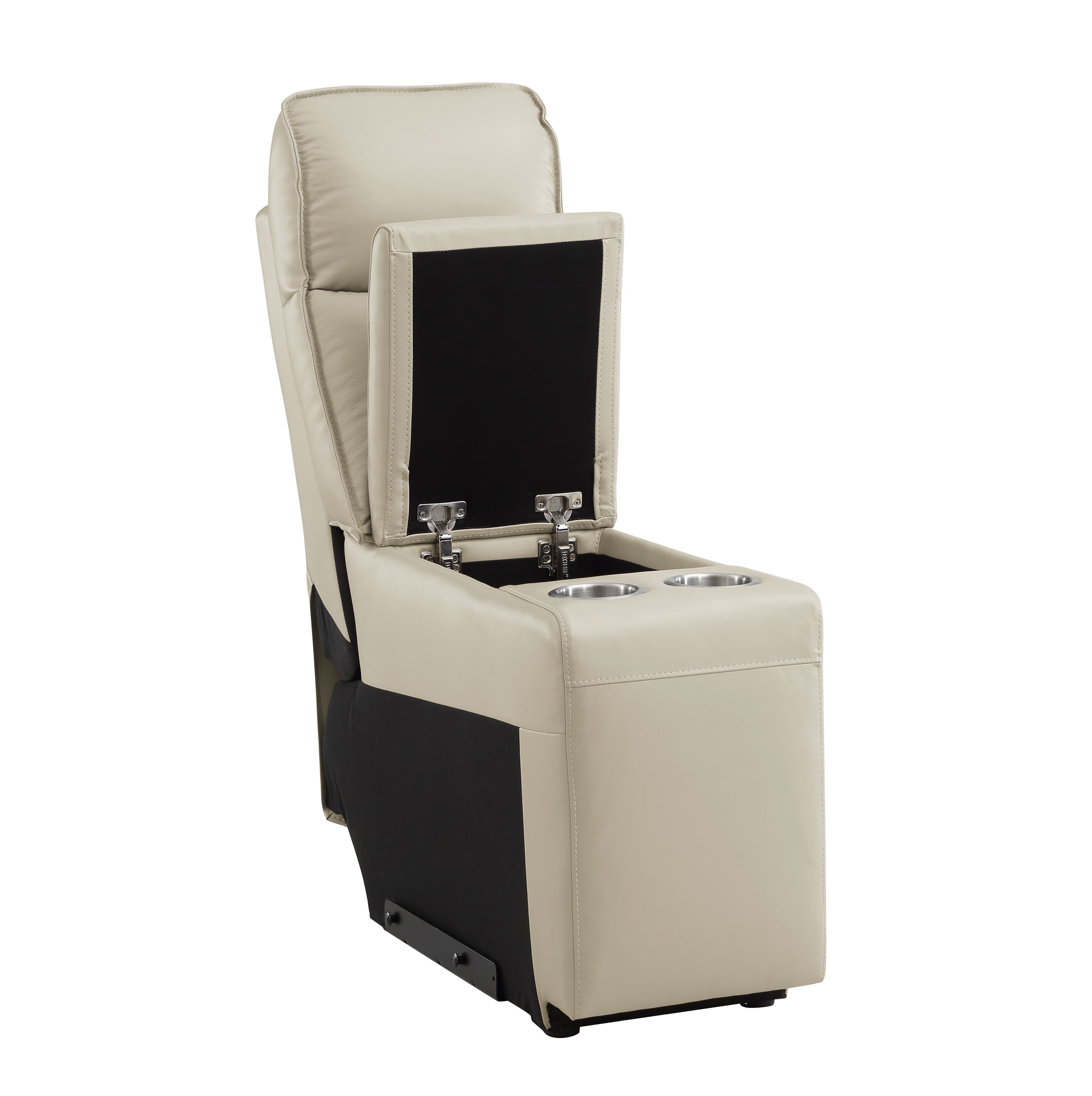 Providing ample seating for your friends and family is the Maroni Collection. The classic sectional shape features an armless chair, corner seat, console – with hidden storage and cupholders – which are book-ended by USB port enhanced end power recliners. Taupe top-grain leather covers the collection where your body touches with faux leather covering the remaining areas. The power reclining mechanism brings you to your desired position with a touch of the button. Providing additional function to the sectional is the USB ports and power operated headrests that allow you to further customize your comfort experience.