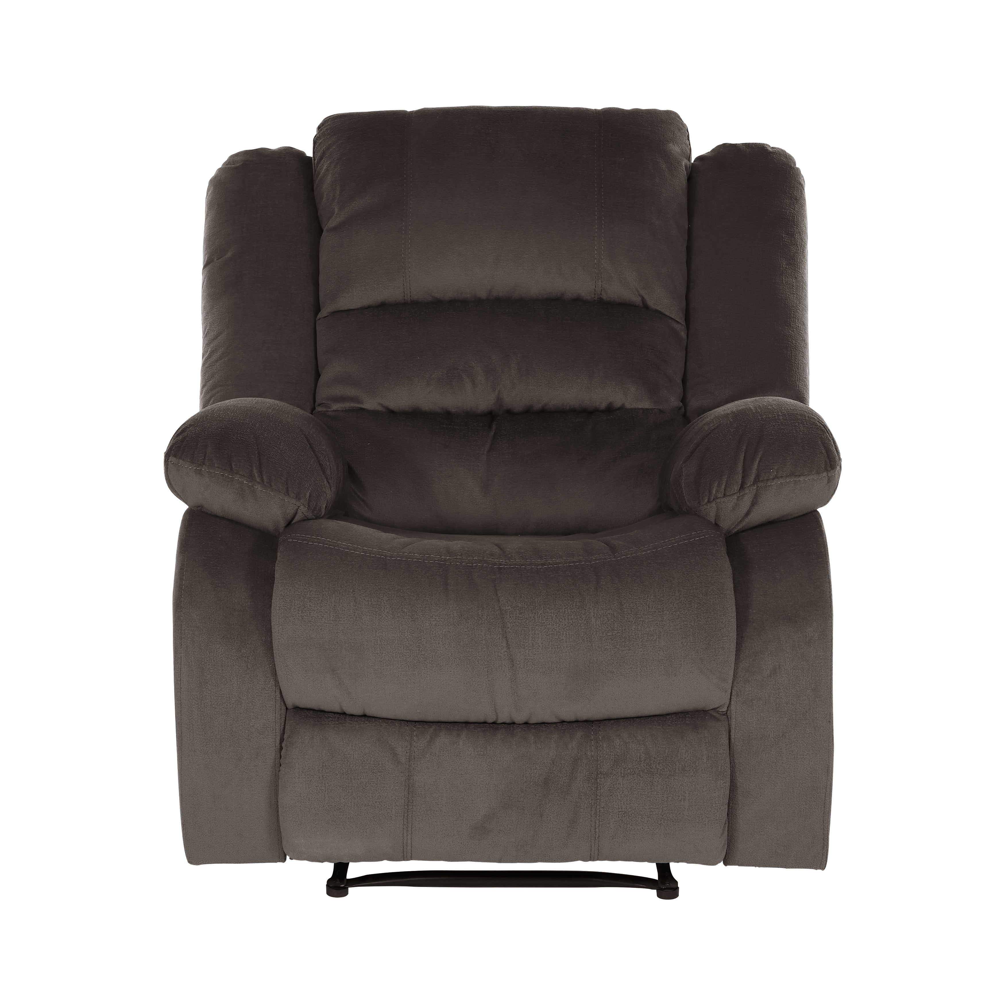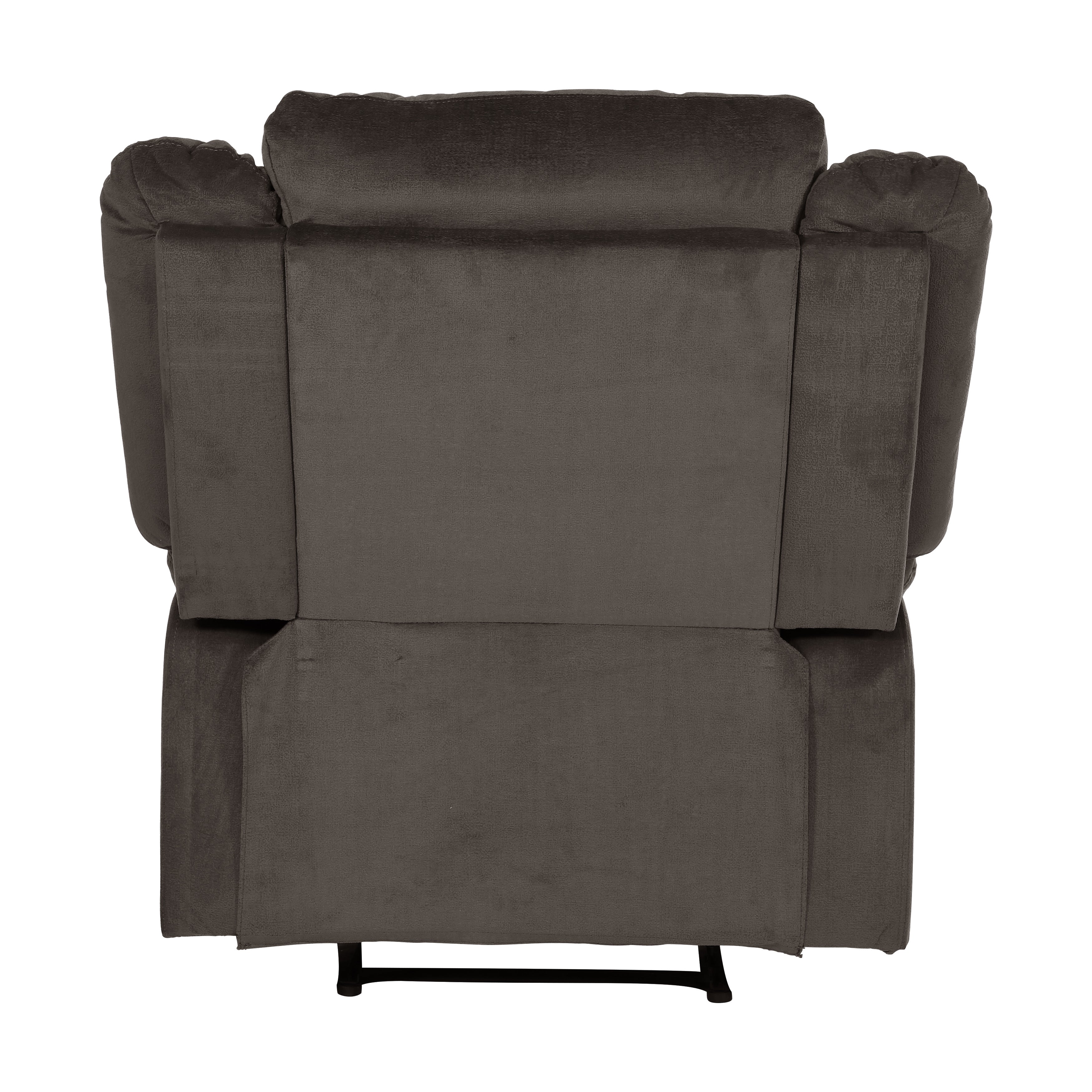 The classic transitional styling of the Jarita Collection creates a look that is perfect for your casual living space. Offered in chocolate micorfiber, the reclining chair offers plush seats, backs and arms. With the pull of the manual reclining mechanism, you are taken from a seated to prone position in an easy motion.