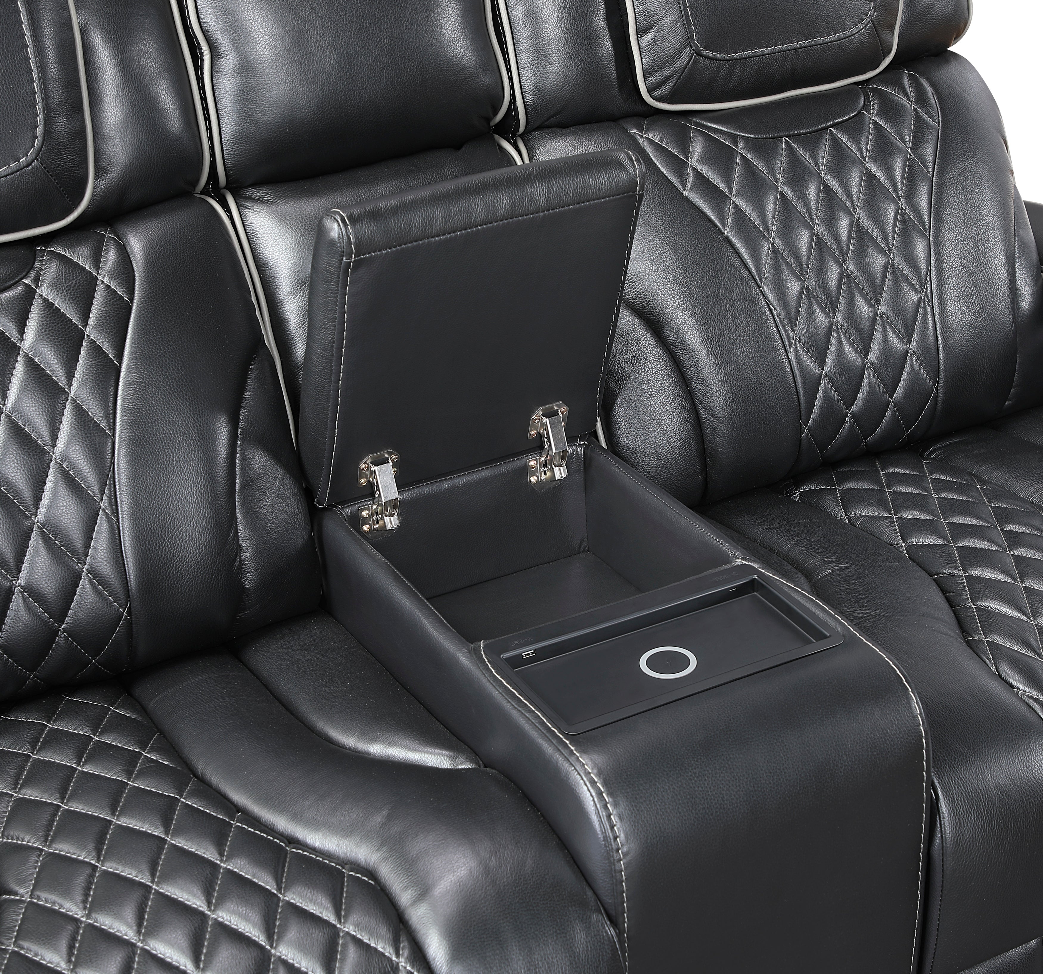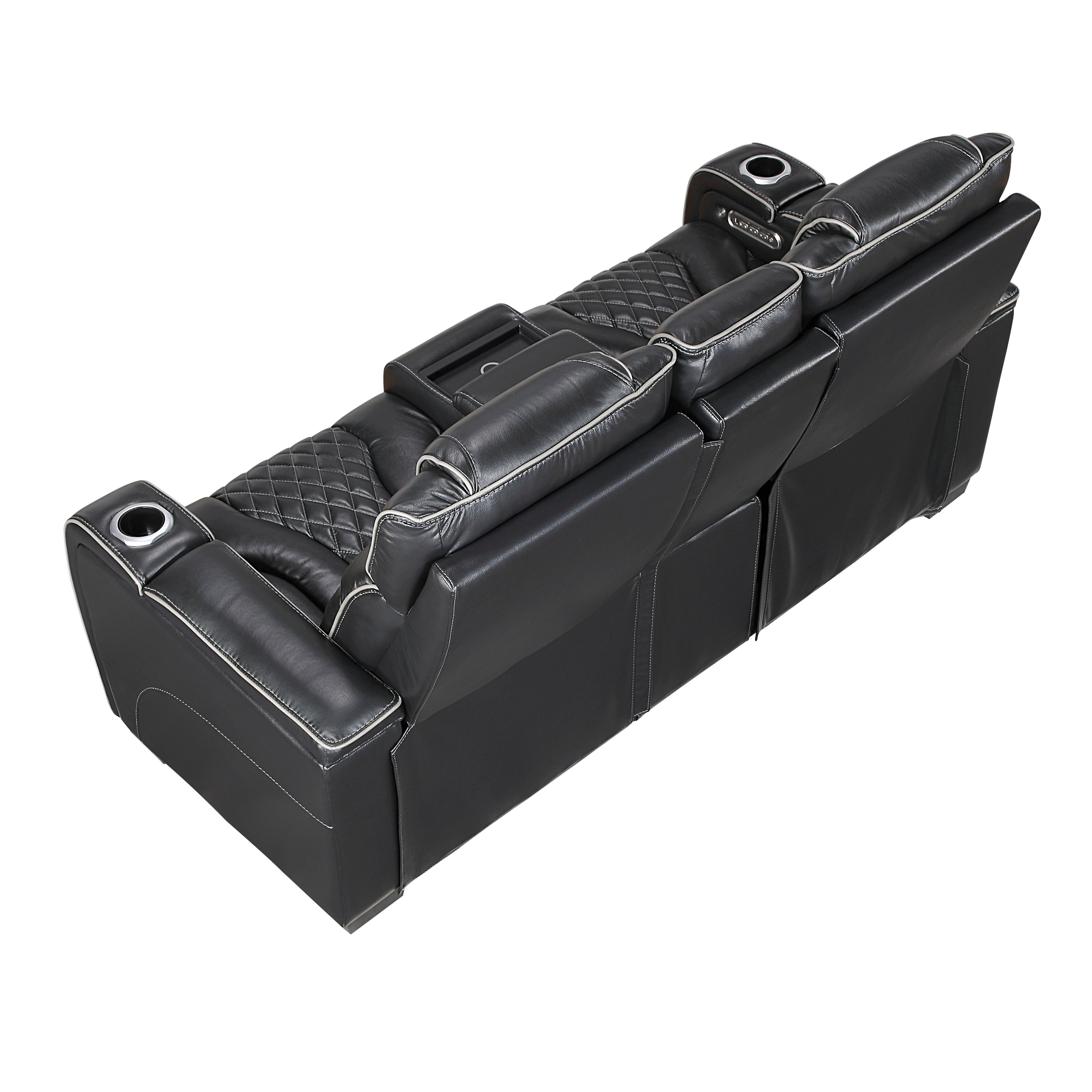 | 8449BK-3PWHM Power Double Reclining Sofa with Center Drop-Down Cup Holders, Power Headrests, Storage Arms with Cup holders, Reading Lights, Wireless Charger, Air Massage and Heat, LED Lighting and Charging Ports | 1 | 84.75 x 40 x 42.5H | 0 x 0 x 0H | 1 |