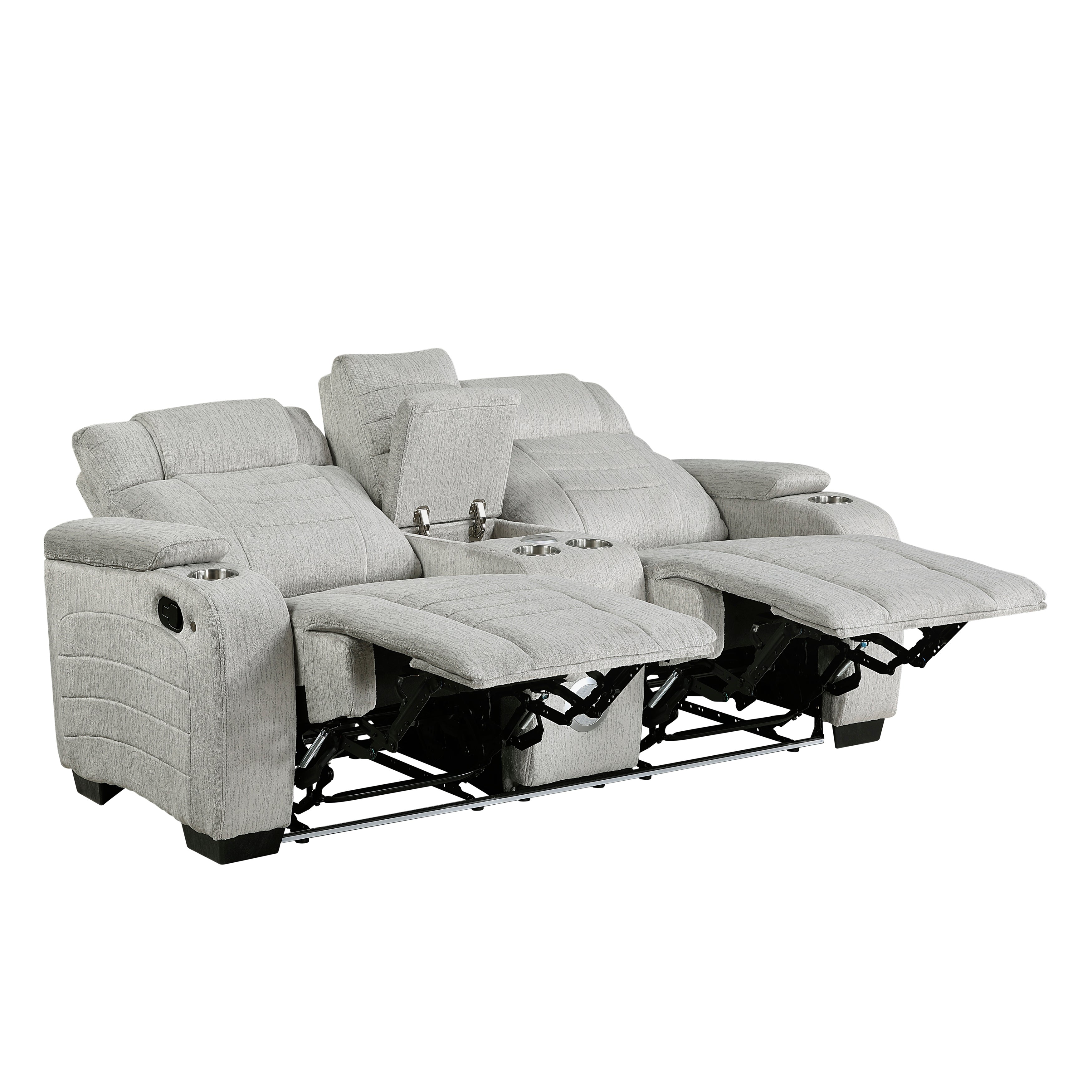 Ronan Light Gray Double Reclining Loveseat with Center Console