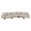 Configurable to your available space, the Traverse Collection allows for the addition and detachment of pieces for a customized seating experience. The 4-piece sectional configuration consists of two corner units paired with two armless chairs. The gray corduroy fabric upholstery creates a plush expanse for a soft touch experience. The corner seat features two toss pillows, adjustable back and arm rest, and reversible cushions. The armless chair features a lumbar pillow, and reversible cushions.