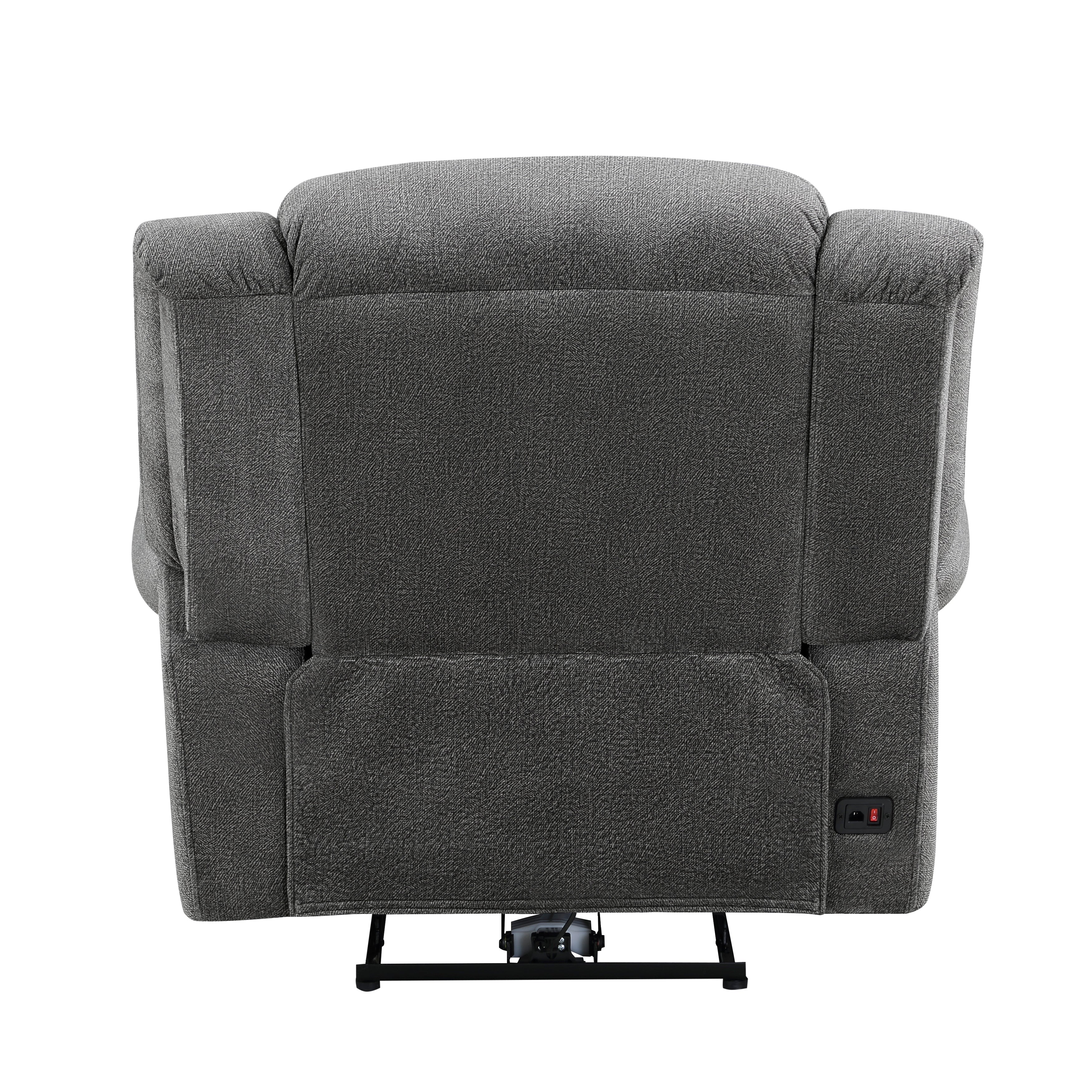 Styled for the transitional home, the Brennen Collection’s comfortable presence will be a perfect match for your casual living room. The chair features a power reclining mechanism allowing for ease of motion when going from seated to reclined. Plush seating is defined by the contoured stitching, while the arms of the chair are accented with nail head trim. Charcoal-hued textured microfiber covers the seating group, providing soft touch and decorative versatility.