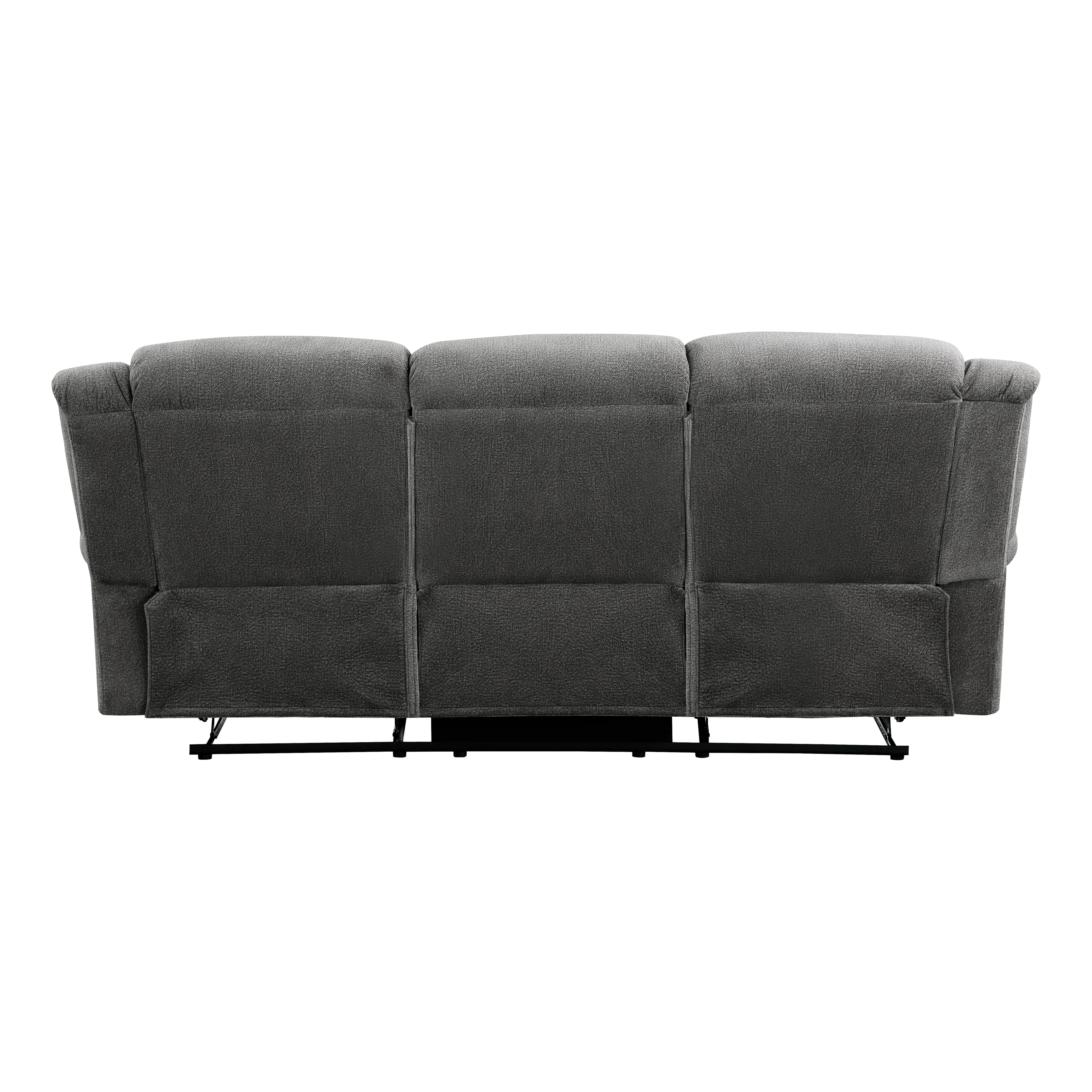 Styled for the transitional home, the Brennen Collection’s comfortable presence will be a perfect match for your casual living room. The sofa of the collection features manual reclining mechanisms allowing for ease of motion when going from seated to reclined. Plush seating is defined by the contoured stitching, while the arms of the sofa are accented with nail head trim. Charcoal-hued textured microfiber covers the seating group, providing soft touch and decorative versatility.