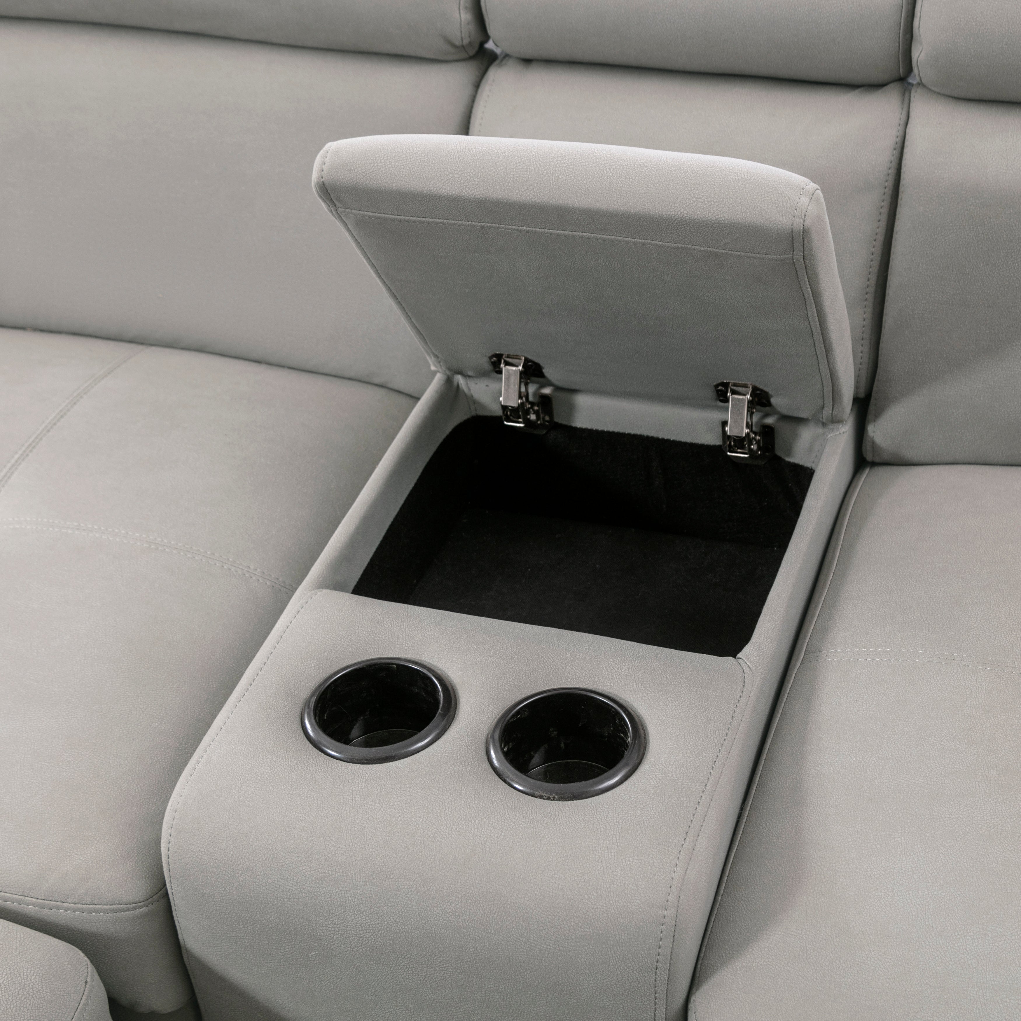 Farrah Light Gray 3-Piece Sectional with Adjustable Headrests, Pull-out Bed and Console