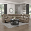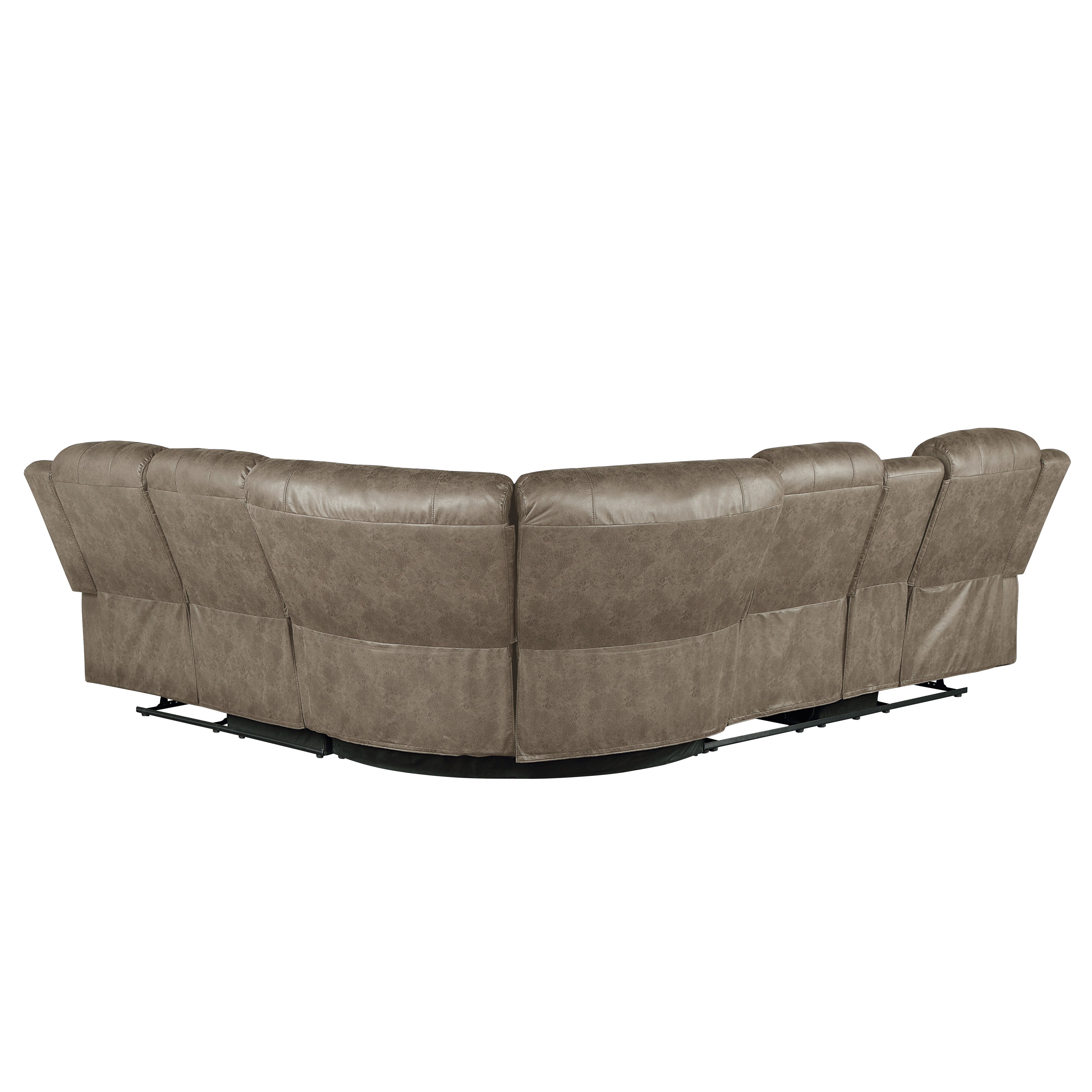 The design of the Centeroak Collection provides a platform for your relaxing downtime. From the classic transitional style to the versatile neutral color of the sandy brown faux suede fabric covering, this collection is the perfect addition to your living room. Plush seating features vertical tufting, pillow-top arms, each enhanced by the dual end recliners of the sectional. Creating additional function is the console unit providing secure placement of beverages and lift top hidden storage. The reclining mechanisms of the end recliners are engaged by a pull of the side mounted tabs, taking you from seated to prone in an easy motion.