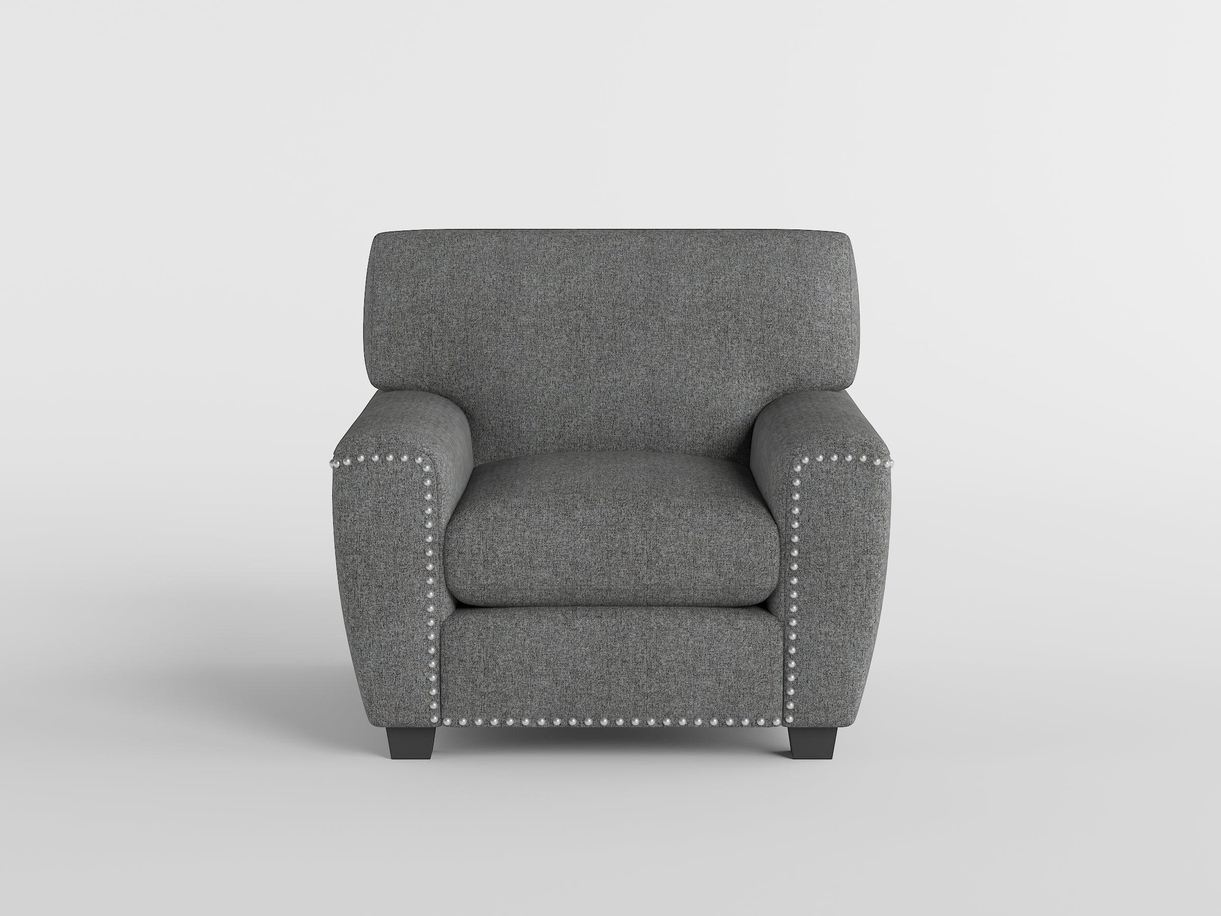 Enhance your living space with this versatile and stylish gray Chair. Featuring reversible back and seat cushions, this chair offers extended comfort and longevity, allowing you to easily refresh its appearance. The textured dark gray fabric upholstery complements a variety of décor styles, while the nailhead trim detailing adds a touch of sophistication. The sturdy block feet provide a stable foundation, making this chair a perfect addition to your living room, reading nook, or bedroom. Enjoy the perfect blend of comfort, style, and practicality with this contemporary accent chair.