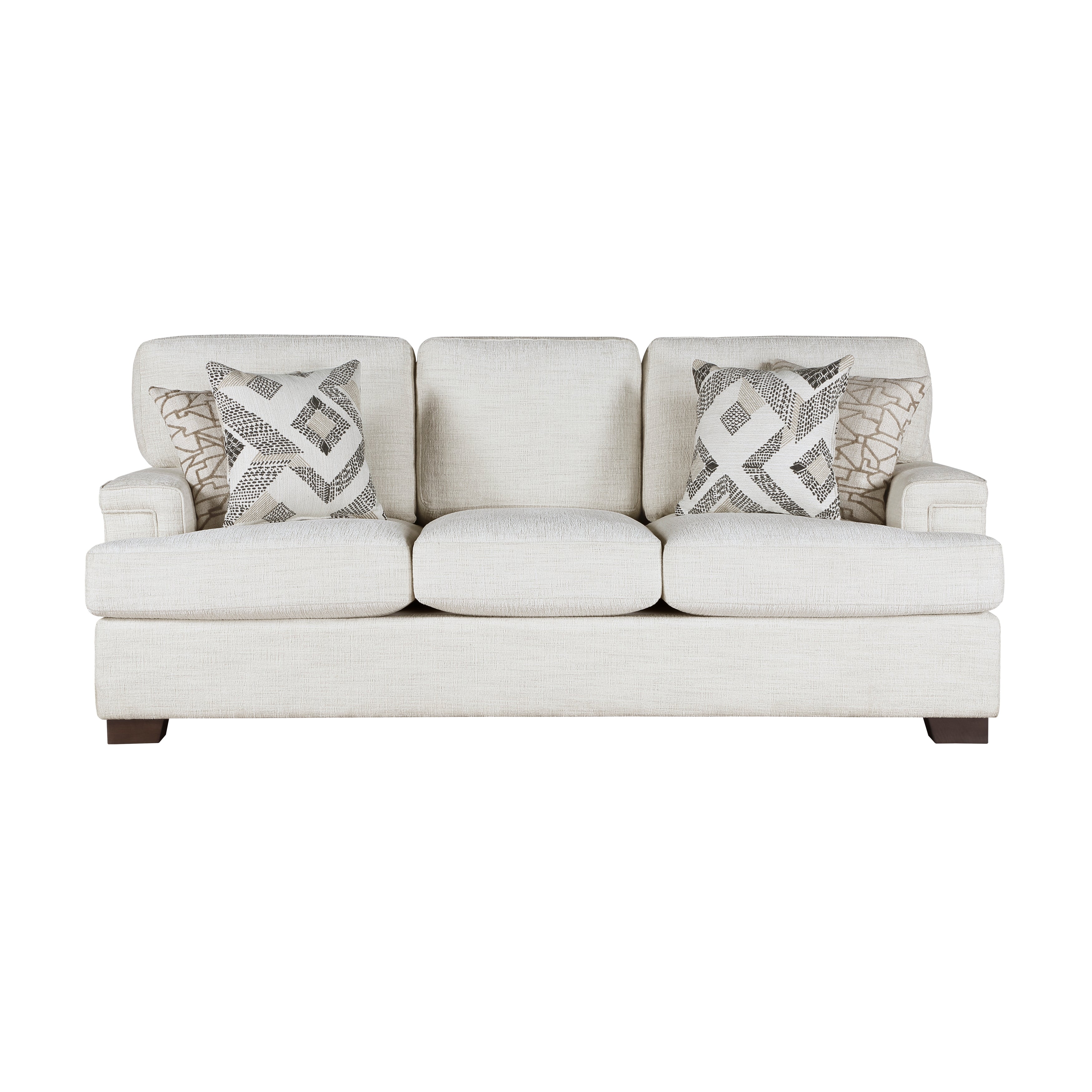 Subtle modern elegance lends its design inspiration to create the lines of the Orson Collection. Substantially sized for your comfort, the distinct profile of the sofa lends ample seating space to your living room. Cream chenille fabric upholstery covers the collection with espresso-hued wood legs providing support. Contrasting decorative toss pillows provide accent to the sofa.