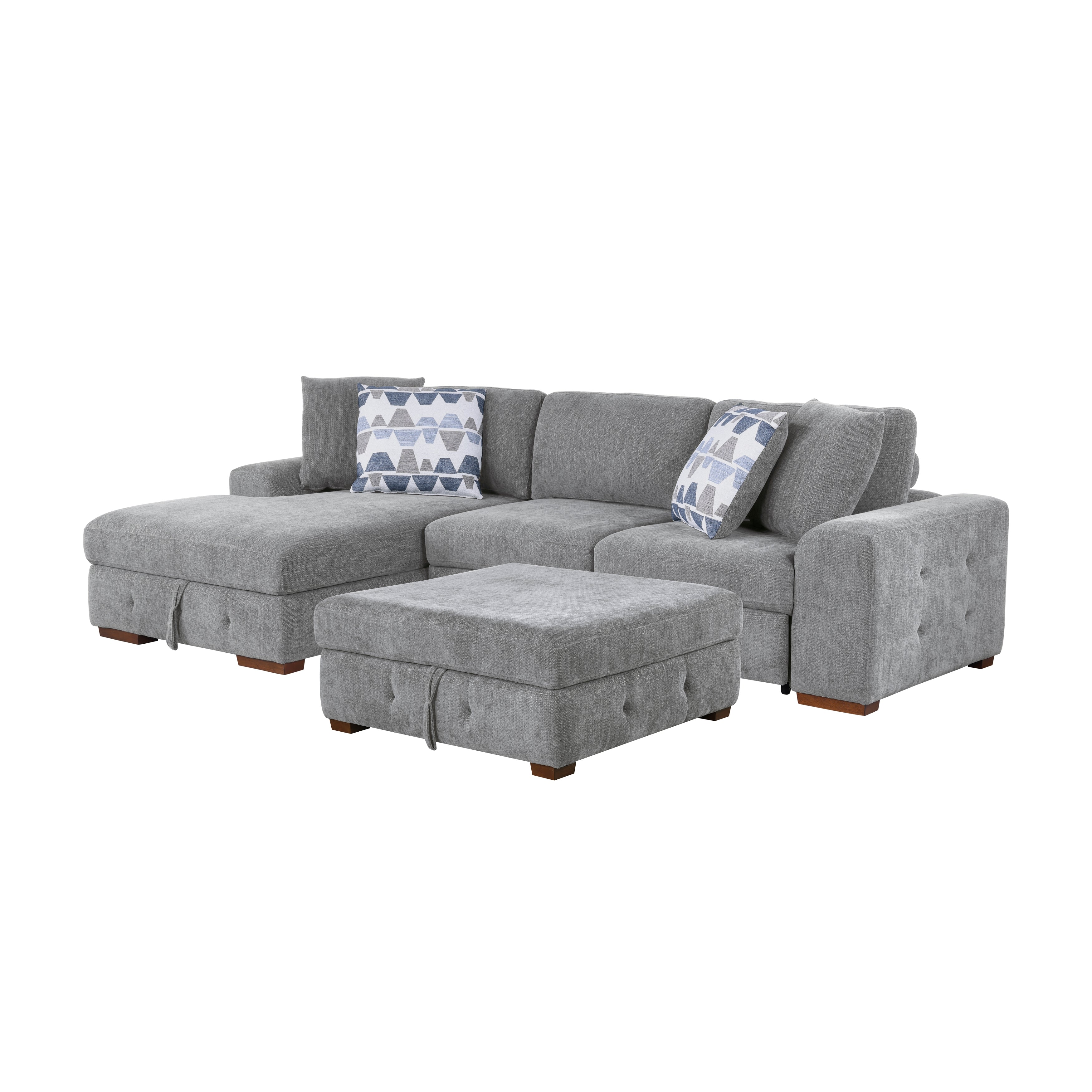Raife Gray 3-Piece LAF Chaise Sectional with Pull-Out Bed and Storage Ottoman