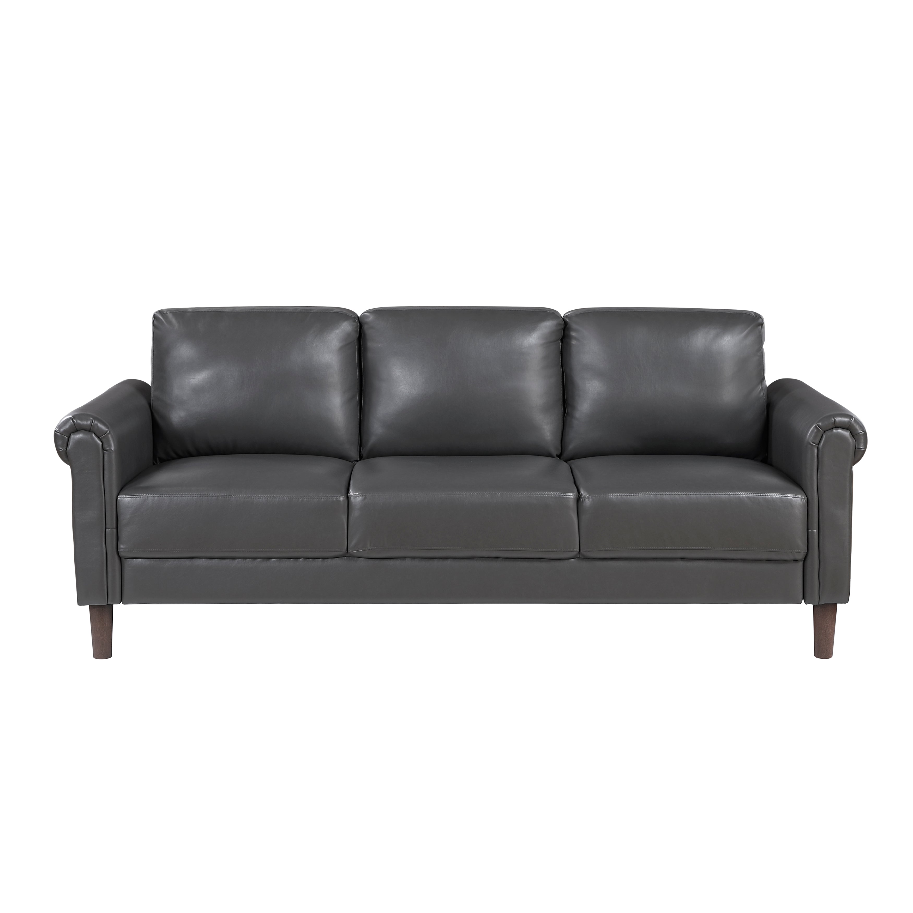 Upgrade your living space with this mid-century modern faux leather sofa, designed to deliver timeless elegance, plush comfort, and lasting durability. Featuring rolled arms, deep cushioned seating, and smooth faux leather upholstery, this 3-seater couch offers a sophisticated yet cozy addition to any home. The high-quality faux leather ensures a luxurious feel with easy maintenance, while the sturdy wooden frame and tapered legs provide exceptional stability and support. Perfect for living rooms, apartments, offices, or lounge areas, this sofa is the ultimate combination of classic design and modern functionality, making it an ideal centerpiece for relaxation and entertaining.