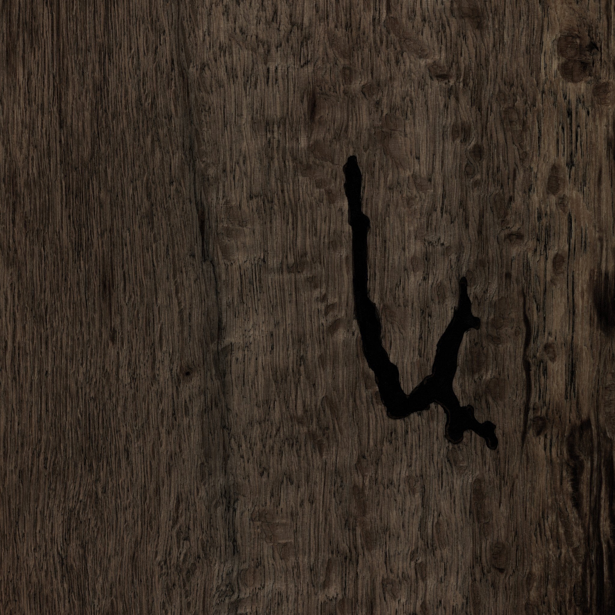 - Made from thick-cut oak veneer with a faux rustic finish made to emulate wormwood oak, this low, large-scale console table features chunky squared legs and dovetail joinery detailing.