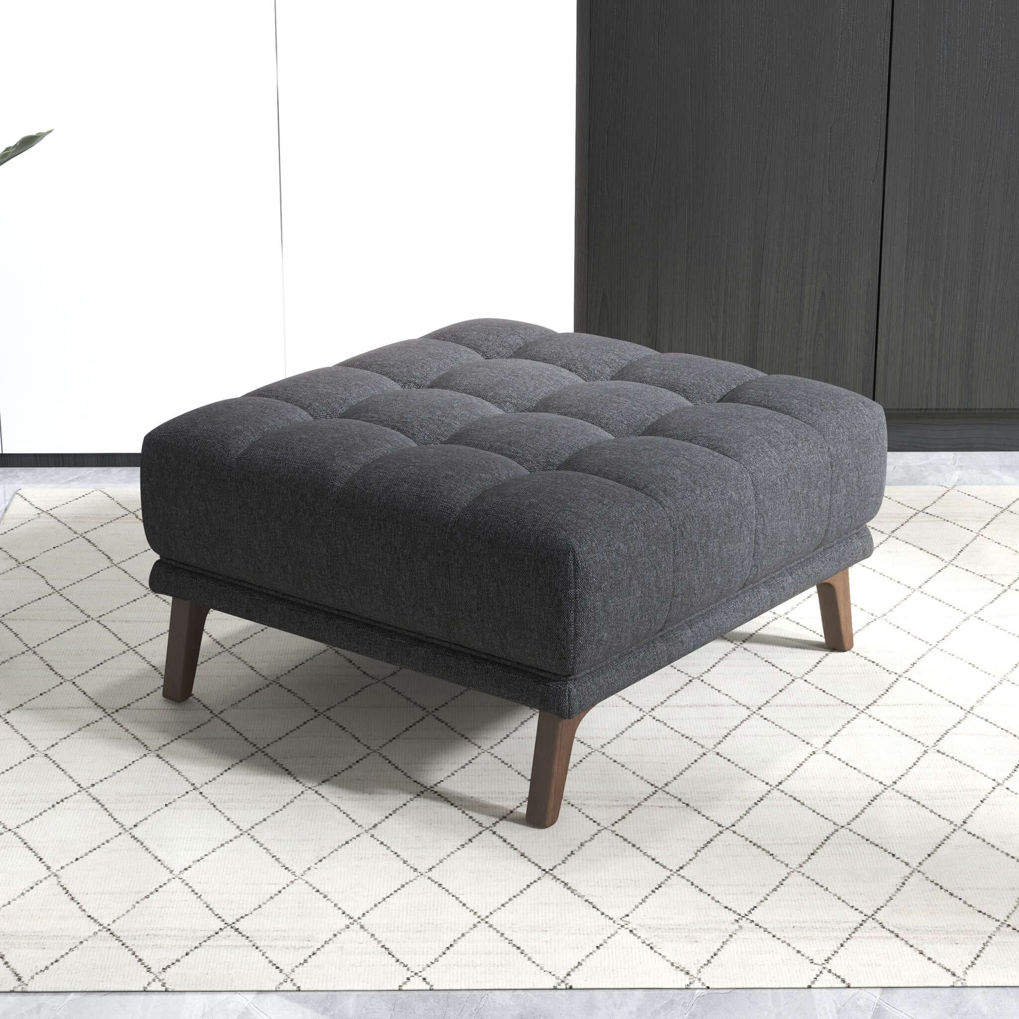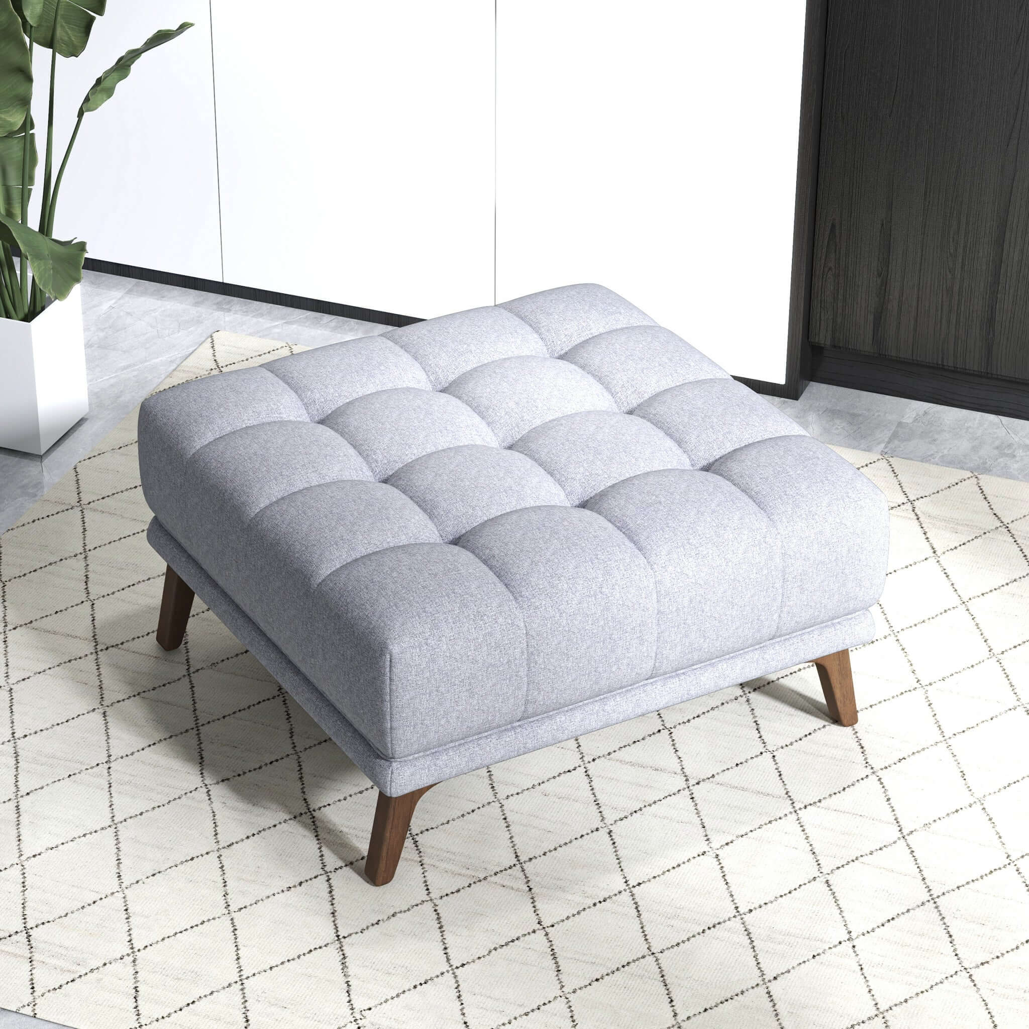 The Tufted Solid Wood Leg Ottoman is a stunning piece of mid-century modern living room furniture that seamlessly combines style and functionality. This ottoman is the perfect addition to any living room, serving as both a comfortable footrest and a versatile coffee table. Crafted with meticulous attention to detail, this ottoman features a tufted design that adds a touch of elegance to any space. The tufted upholstery enhances its visual appeal and provides a plush and comfortable seating experience. This ottoman's solid wood legs are sturdy and durable and add a touch of warmth and sophistication to your living room decor. The mid-century modern design of the legs perfectly complements the overall aesthetic of the ottoman, making it a focal point in any room. With its generous size, this ottoman offers ample space for you to rest your feet or place a tray of snacks and beverages. Its versatility as a coffee table allows you to easily transform your living room into a cozy gathering space for entertaining guests or enjoying a quiet evening at home. Whether you're looking to add a touch of mid-century modern charm to your living room or simply seeking a functional and stylish piece of furniture, the Tufted Solid Wood Leg Ottoman is the perfect choice. Its timeless design and practicality make it a must-have addition to any living room furniture collection.
