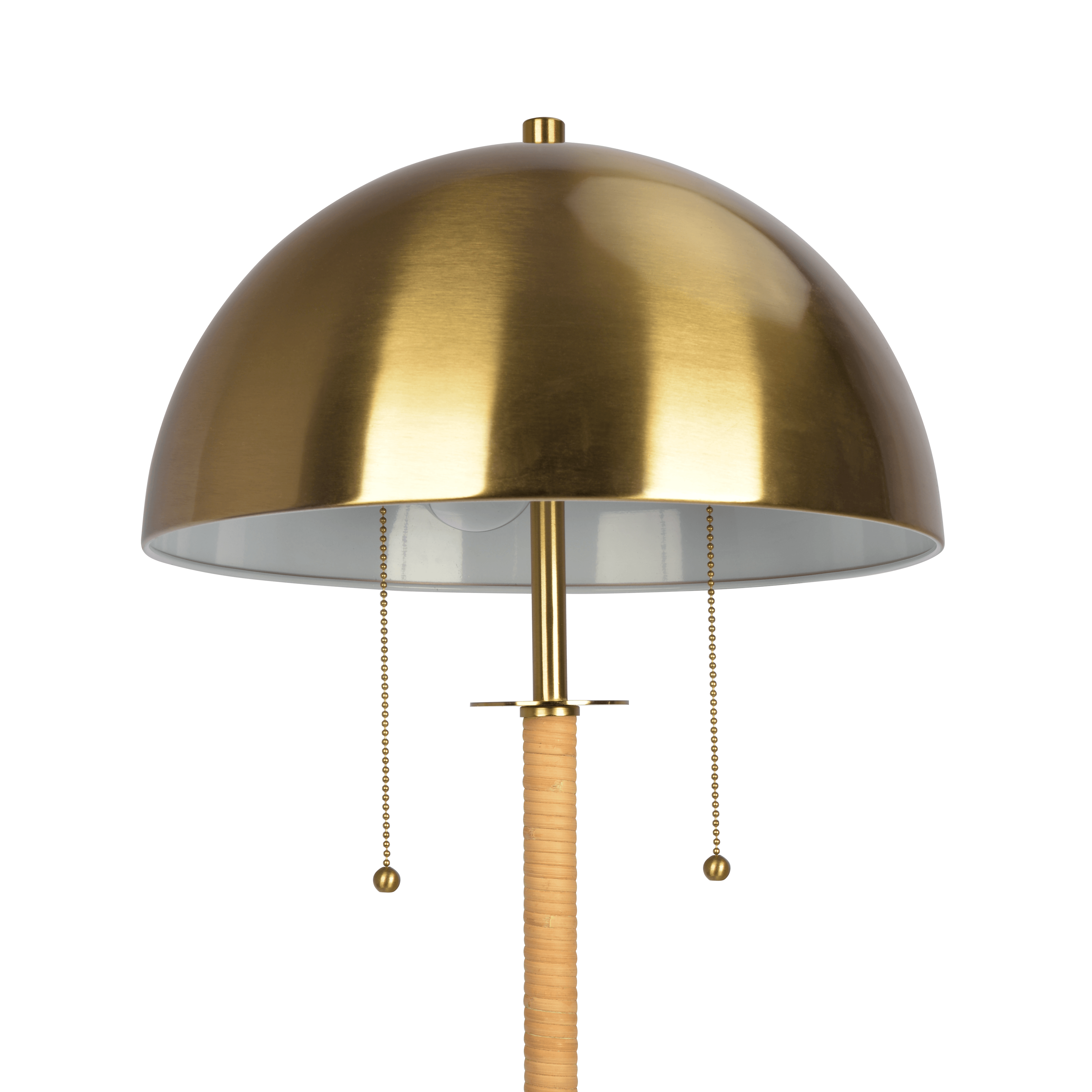 Introducing the Allure 2-Light Floor Lamp, a stylish addition to any home. Crafted with elegant gold brass and natural rattan tubes, this lamp adds a touch of sophistication to any room. Featuring a double on/off pull chain, it offers easy switching between two brightness levels. Enhance your living space with the cozy charm of nature and the sleek elegance of brass. Perfect for the living room, bedroom, or office, the Allure Floor Lamp combines style and functionality, making it a versatile piece for any setting. Transform dull lighting with the perfect blend of aesthetics and practicality.